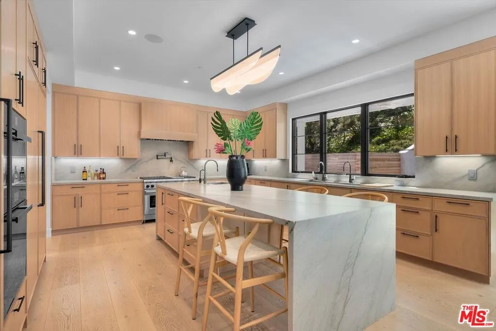 A move in ready furnished lease in prime Pacific Palisades. This modern Farmhouse by Provincetown Estates that immediately welcomes you upon first glance while simultaneously offering a sense of serenity and privacy. Set on a cul-de-sac with a wide street above the Alphabets neighborhood and just blocks from the heart of the Palisades Village opening January 2026, this meticulously constructed custom-designed home is ready to be personalized to your unique lifestyle. Beautiful Limestone facade, black metal doors, and roof accentuate the striking exterior with natural wine country style landscaping, giving you the hint of what’s inside and announcing you’ve found the antidote to the predictable spec house! The bright and airy entry welcomes you into a radiant home of comfort with a touch of dramatic flair, including 10-foot ceilings. Clean contemporary lines are mixed with a modern farmhouse style to create a relaxed aesthetic. Subtle accents of modern chic, brass and black design elements create fine finishing. Five gorgeous en suite bedrooms, including an airy primary suite with large private terrace and double fireplace. Each of the 6.5 baths enjoy uniquely selected tiles. Stunning chef’s kitchen includes hand-crafted rift cut white oak cabinetry, Wolf, Miele & Sub-Zero appliances, natural stone Quartzite countertops, and a 5-foot commercial grade sink with double faucets. The main level is completed by a luxurious home theater, spacious wine room and office. The outdoors feature a sparkling pool with waterfalls and a living succulent wall, large spa, bbq station and bar area, outdoor fire pit area with fountain, as well as generous grass and patio spaces. Gorgeous materials and finishes include: French white oak floors, Fleetwood doors, Terrazzo floors, designer wallpaper, Toto toilets, 4k projector, Nest thermostats, home automation system and more, just bring your toothbrush! This is also available for sale, please inquire for pricing.