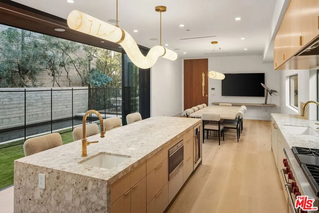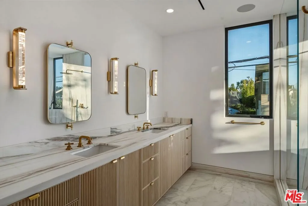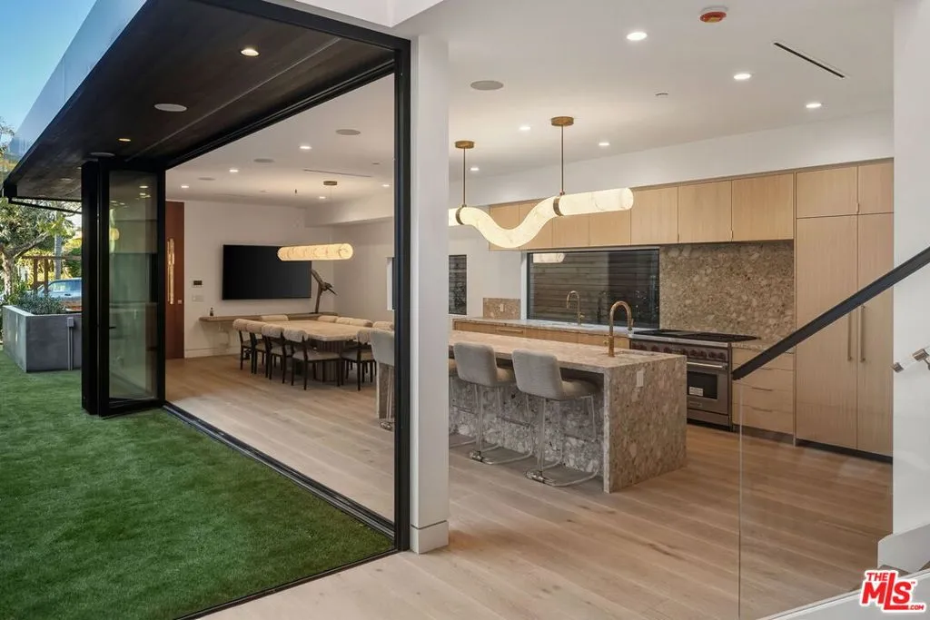Tucked away in one of Venice’s most desirable pockets, just moments from the iconic Abbot Kinney, this brand-new architectural residence is a private offering of rare design pedigree. Meticulously crafted by renowned local architects Electric Bowery, the home seamlessly blends bold materiality with coastal sophistication. Step inside to soaring ceilings, an open-concept floor plan, and curated spaces designed for elevated living. Every finish has been thoughtfully selected and masterfully executed from the live brass Honey Onyx powder room to the Corteccia Natural Quartzite in the first-floor bath, the Tiger Eye Onyx in the guest bath, and the showstopping Calcutta Sunset marble in the primary suite. The media room’s Lilac Marble wall adds a refined, artistic touch. At the heart of the home, the kitchen is a true statement piece featuring Ceppo marble countertops, white oak custom cabinetry, and designer Rejuvenation hardware. The adjacent dry bar, clad in striking Rosso Levanto marble, sets the tone for sophisticated entertaining. Indoor-outdoor living is effortless here, thanks to a tranquil pool that blurs the line between the interior and lush exterior spaces. A spacious three-car garage completes the home, ensuring both functionality and convenience. This is not just a home, it’s a design-forward sanctuary where luxury, privacy, and location converge. Private showings available to qualified buyers. FINISHES & FURNITURE LIST AVAILABLE UPON REQUEST. ALSO AVAILABLE FOR SALE $6,700,000.