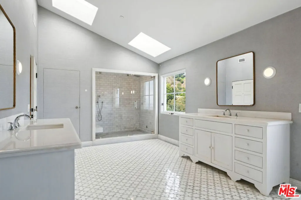 Set above the Chateau Marmont on a quiet cul-de-sac, this 6,687 square foot estate delivers scale, privacy, and unobstructed city views rarely found at this price. A dramatic two-story entry and sweeping staircase introduce the home, with an elevator connecting all three levels for seamless living. Twelve-foot ceilings, Euroline doors, and expansive glass frame panoramic vistas from nearly every room and open to multiple terraces and a mosaic-tiled pool and spa.The main level includes a large living room with terrace access, a formal dining area, and a chef’s kitchen outfitted with Sub-Zero, Thermador, and Miele appliances. Upstairs, the primary suite offers 16-foot ceilings, a fireplace, steam shower, soaking tub, sauna, dual closets, and two private terraces positioned for sunrise and sunset views. Three additional en-suite bedrooms complete the floor.Additional features include a media room, office with its own terrace, interior laundry room, a tranquil garden with mature lemon trees, and a four-car garage with additional parking. Minutes from the Sunset Strip yet completely private, this home combines space, scale, and views in one of the most coveted pockets above West Hollywood. Flexible leasing terms.