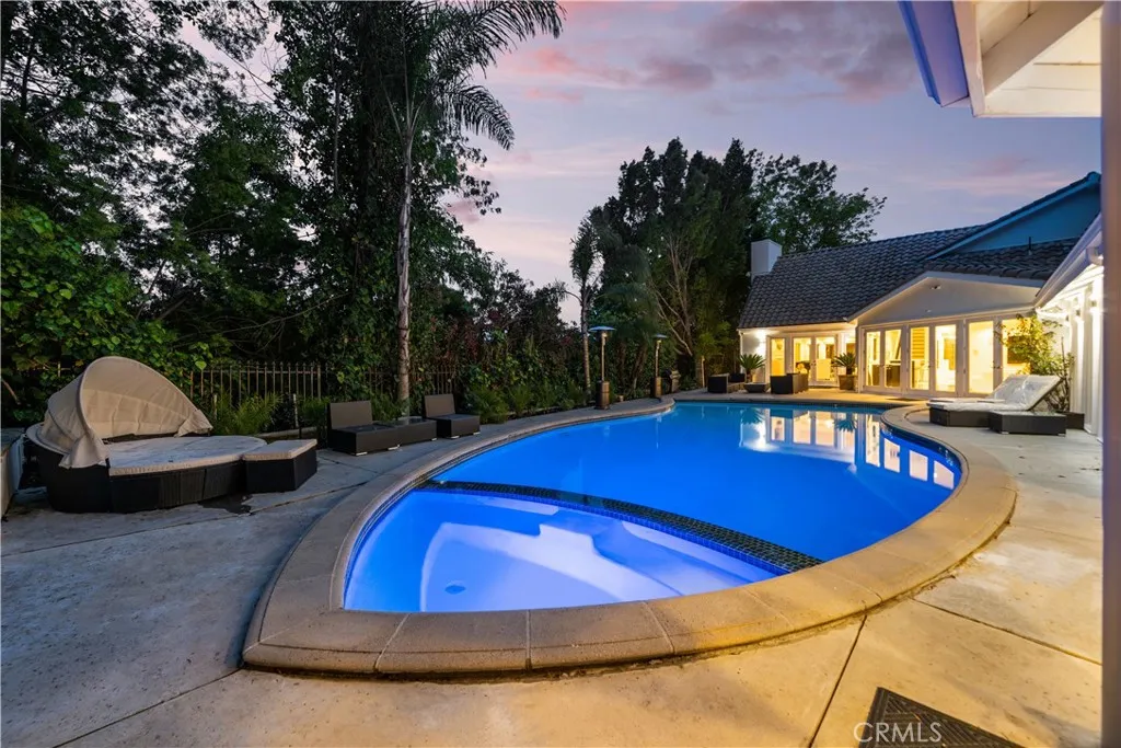 Surrounded by lush greenery and breathtaking views, this tranquil retreat feels worlds away, yet remains just minutes from the vibrant heart of Encino. Inside, soaring ceilings, walls of windows, recessed lighting, and crown molding fill the home with light and sophistication. The furnished interiors, thoughtfully designed with luxury furniture, complement the chef’s gourmet kitchen—featuring premium appliances and two generous seating areas—ideal for everything from casual mornings to lavish dinner parties. The primary suite occupies the entire upper level, creating a private sanctuary with a versatile lounge/office space, oversized walk-in closet, spa-inspired bathroom, and an expansive private terrace with serene views. Designed for both relaxation and entertaining, the resort-style backyard showcases a sparkling pool, rejuvenating hot tub, and lush landscaping—all framed by absolute seclusion. Additional features include solar panel installation that significantly reduces the DWP power bill, a Ring security system, designer outdoor lighting, and a gated motor court. Located south of Ventura Boulevard, this prestigious address offers effortless access to upscale shopping, fine dining, top-rated schools, and places of worship—while preserving the rare privacy of a true hidden estate.