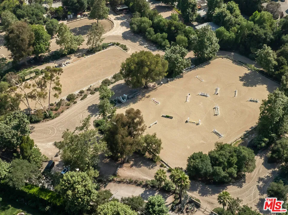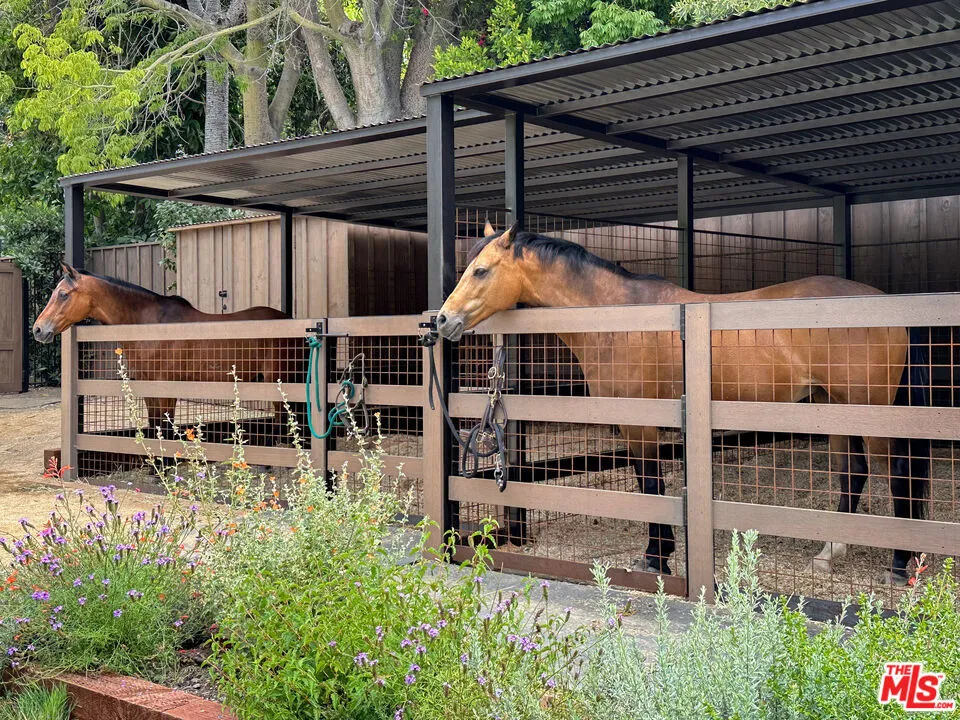 Very special, extensively restored and remodeled sprawling single-story California Ranch on an expansive, sunny 23,331 square foot flat lot on a quiet cul-de-sac in bucolic Sullivan Canyon. Gated and completely private, with huge front and rear yards, gorgeous gardens and tranquil canyon setting, this architectural gem has been redone with great taste, quality and sensitivity to the original Cliff May architecture, infusing the iconic Ranch aesthetic with a fresh, Contemporary feel. All the signature elements of pioneer builder and architect Cliff May’s Ranch style can be found here: open floor plan for living and dining, floor to ceiling glass that brings light and nature in, three fireplaces and seamless integration of indoor and outdoor spaces with all rooms opening to patios and garden. Beautiful central living room with built-ins and fireplace, fabulous family room with open-beamed ceiling, wrap-around windows and large brick hearth, formal dining room, large, sunny cook’s kitchen and cozy den/children’s playroom. 4 bedrooms, 3 1/2 baths including spacious primary bedroom that opens to two separate gardens and has dual fitted closets and spa-like bath. Other features and amenities include all new state of the art kitchen, baths and laundry room, blonde wide-board oak plank floors, extensive built-ins, wet bar, wood-paneled walls, breathtaking grounds, firepit, motorized awning, three horse stables, chicken coop, and two car attached garage/gym. Most of the designer furnishings are also available separately. Situated in close proximity to the riding ring and Santa Monica Mountain trails, this warm, inviting, yet striking home represents a very rare offering in the best location within highly desirable Sullivan Canyon. A true country retreat in the city!