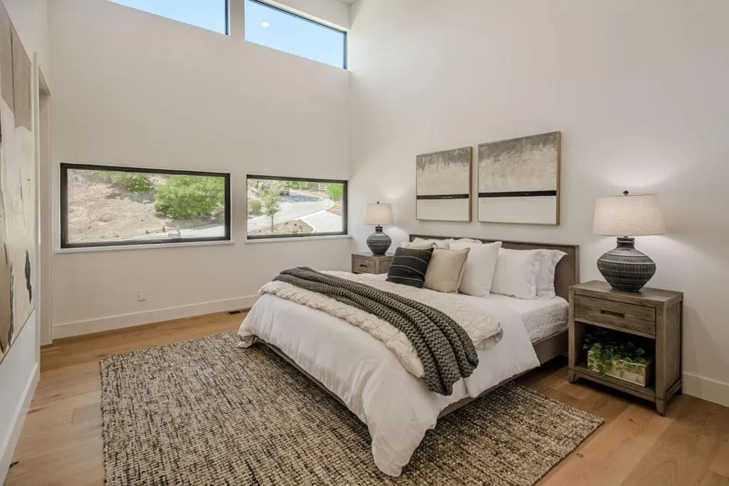 Welcome to 45 Calaveras Court, a brand-new modern masterpiece nestled in the Hillsborough hills. Located at the end of a private cul-de-sac on a sizable 4-acre lot, this stunning residence offers approximately 7,000 square feet of elegantly designed living space. Enjoy unobstructed canyon views from every window, providing a breathtaking backdrop to your everyday life. Step inside to discover soaring ceilings that create an open and inviting atmosphere, complemented by an abundance of natural light that fills every corner. The expansive first floor features a massive entertainment deck, perfect for hosting gatherings or simply relaxing amidst nature. With a total of 8 bedrooms, including master suites on each level, this exceptional home is perfect for large families or multi-generation living.