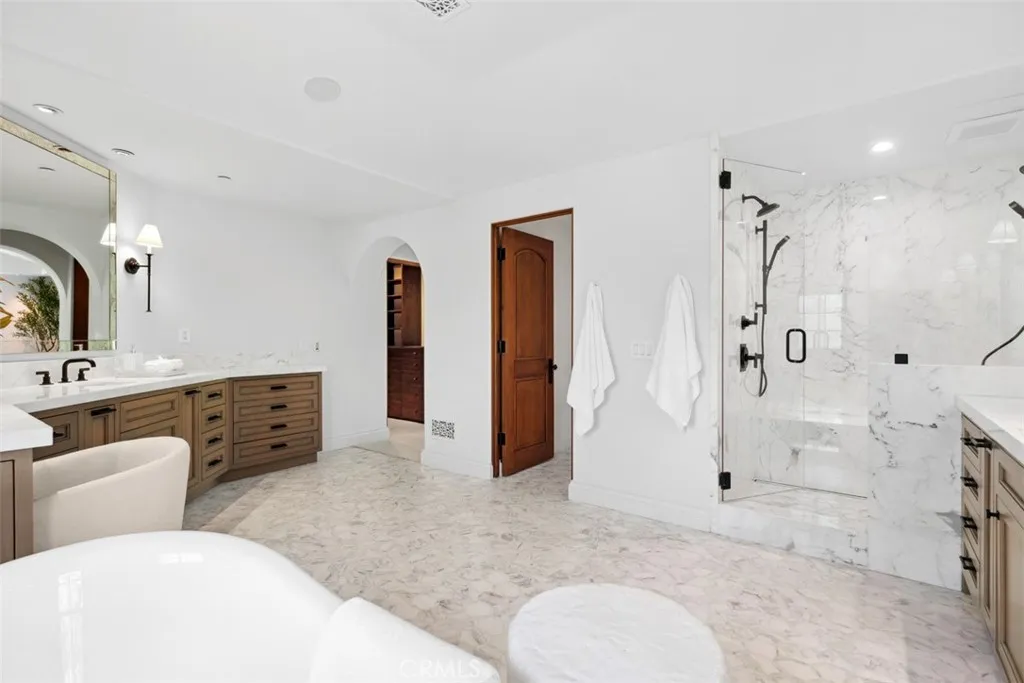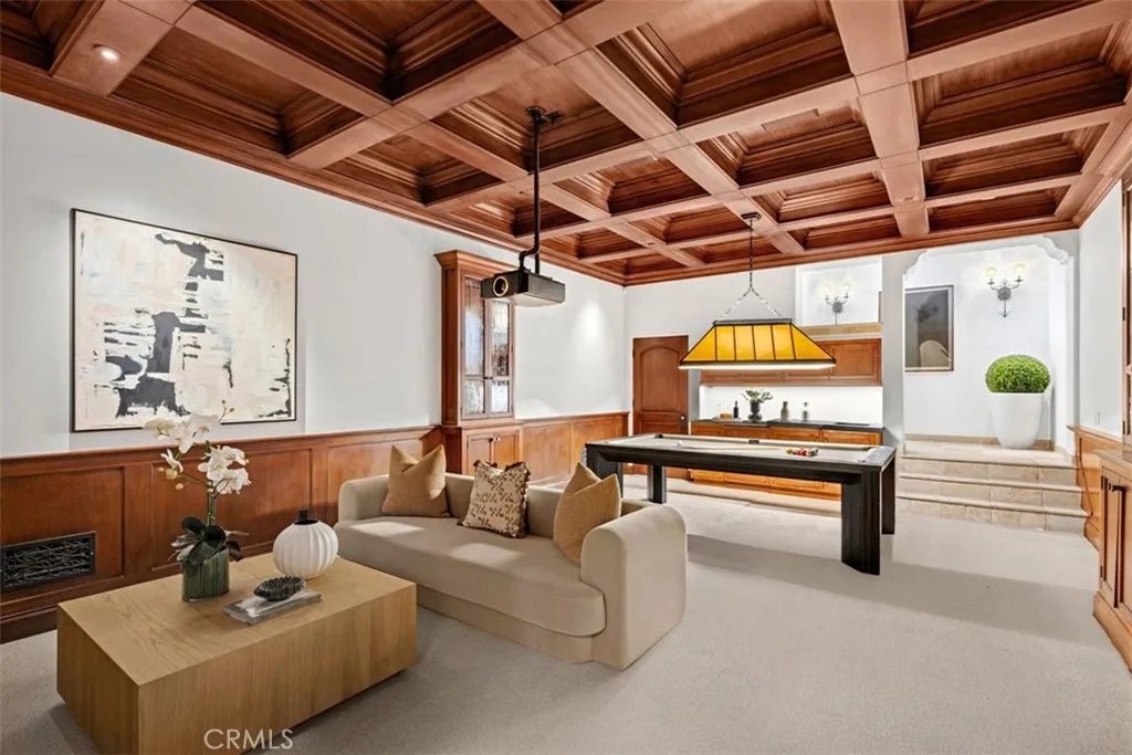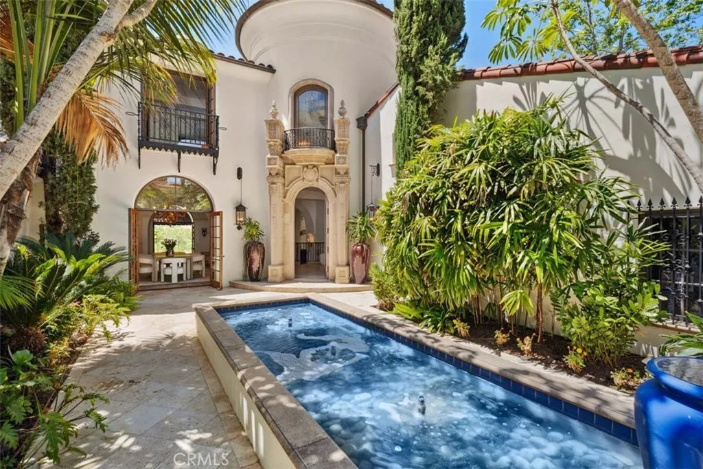 Reminiscent of the timeless villas along the Mediterranean coast, this front-row custom estate in Shady Canyon has been beautifully renovated to blend classic architecture with sophisticated, modern living. Set against the breathtaking backdrop of Bommer Canyon, the home offers an incredible 200 feet of sweeping scenic views-creating a private sanctuary designed for refined living and grand entertaining. From the sparkling pool and spa to the lush emerald lawn and multiple al fresco dining areas, every outdoor space is designed for year-round enjoyment. Framed by forever views from nearly every vantage point, this residence invites you to exhale and stay awhile. Step inside to a dramatic double-height foyer where arched hallways and custom wrought-iron railings frame a graceful, curved staircase. Natural light floods the interiors, drawing the eye to garden views beyond and setting the tone for the elegance found throughout. Spanning approximately 7,746 square feet across three levels-with convenient elevator access-the 5-bedroom, 7-bath estate showcases a serene neutral palette and wide-plank European oak flooring, creating a sense of cohesion and effortless elegance. The newly remodeled open-concept kitchen is the heart of the home, featuring designer cabinetry, premium appliances, and a large center island. It opens seamlessly to the family room and out to the backyard, where glass doors invite in light and canyon views-perfect for indoor-outdoor living and family gatherings. Upstairs, three spacious bedrooms include a serene primary suite with a private terrace, sitting area, and spa-inspired bath featuring dual vanities, a soaking tub, and walk-in marble shower. All baths have been recently reimagined with boutique hotel-level finishes and fixtures. The lower level is an entertainer’s dream-offering a game and media lounge with coffered ceilings, custom cabinetry, a built-in bar, and plush seating with a full projection screen for movie nights. Outside, the spirit of the Mediterranean continues with vine-draped loggias, a central courtyard with tiled fountain, and lush landscaping. Enjoy a built-in BBQ, pool, and spa-set against the undisturbed beauty of Bommer Canyon. Shady Canyon offers two 24-hour guard gates, clubhouse, swim, pickleball, tennis, hiking/biking trails, playground, and a world-class Golf Club.