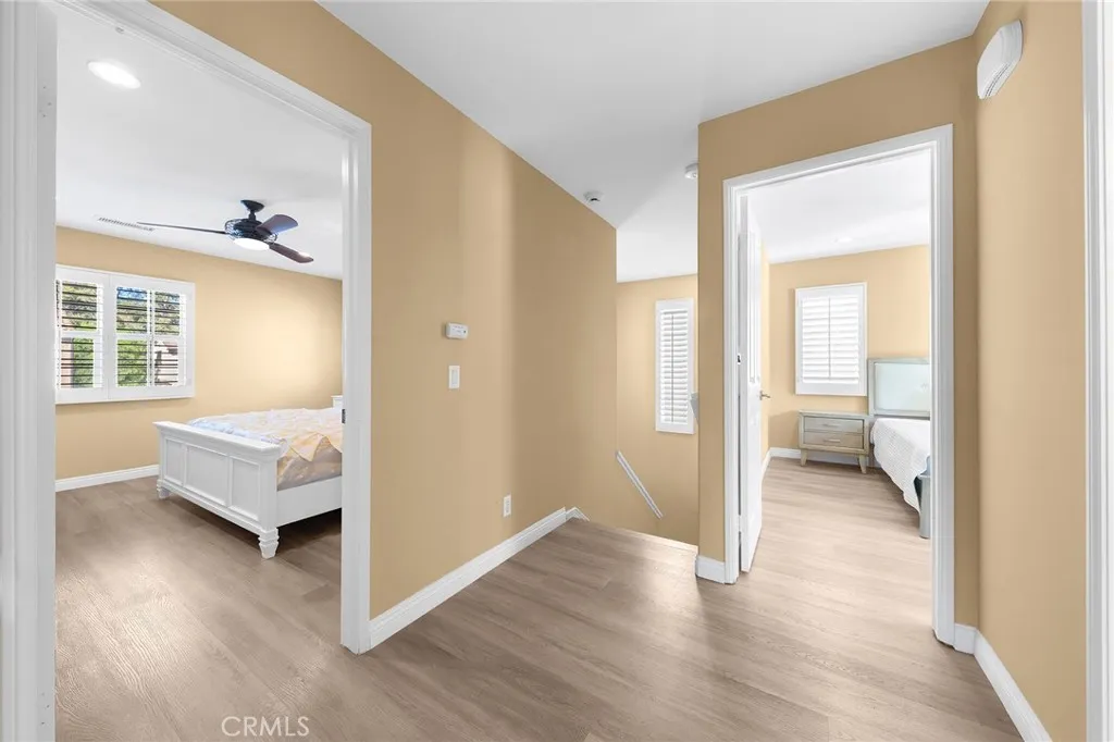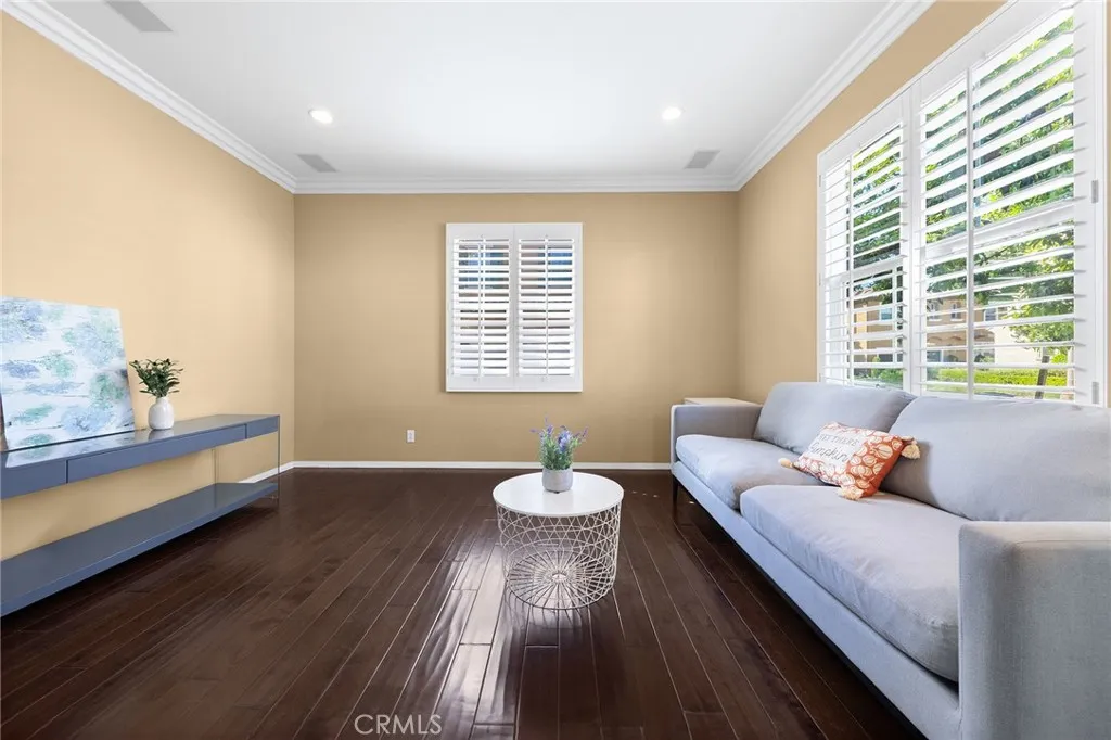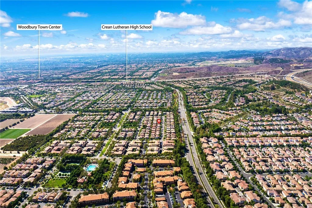 Welcome to this exceptional 4-bedroom, 3-bath residence offering comfort, functionality, and outstanding value. The flexible floor plan includes a first-floor living room that may be used as a fourth bedroom with a full bath, fully permitted for peace of mind. Upon entry, the home features a bright living room on the right and a formal dining room on the left, creating a welcoming flow for gatherings and everyday living. Beyond the dining room lies the kitchen, which opens to a private backyard patio—an inviting retreat ideal for outdoor dining or quiet relaxation. Wood flooring runs throughout the home, adding warmth and continuity. Upstairs, you’ll find three spacious bedrooms, thoughtfully designed to meet diverse needs. The primary suite offers a generous walk-in closet and an en-suite bath, creating a serene private space. Two additional bedrooms complete the second level, perfect for family, guests, or office use. The location is highly desirable, with convenient proximity to Woodbury Town Center for shopping and dining, as well as the Great Park Sports Complex for recreation and community activities. With its versatile layout, modern finishes, and prime setting, this home presents an opportunity not to be missed.