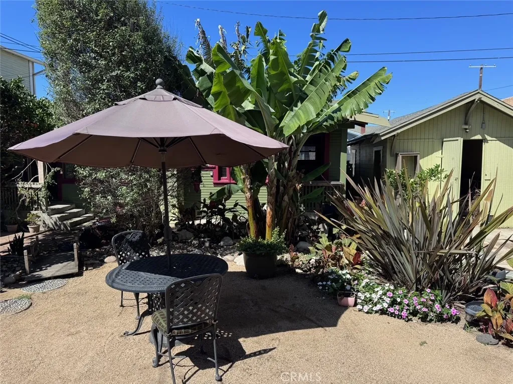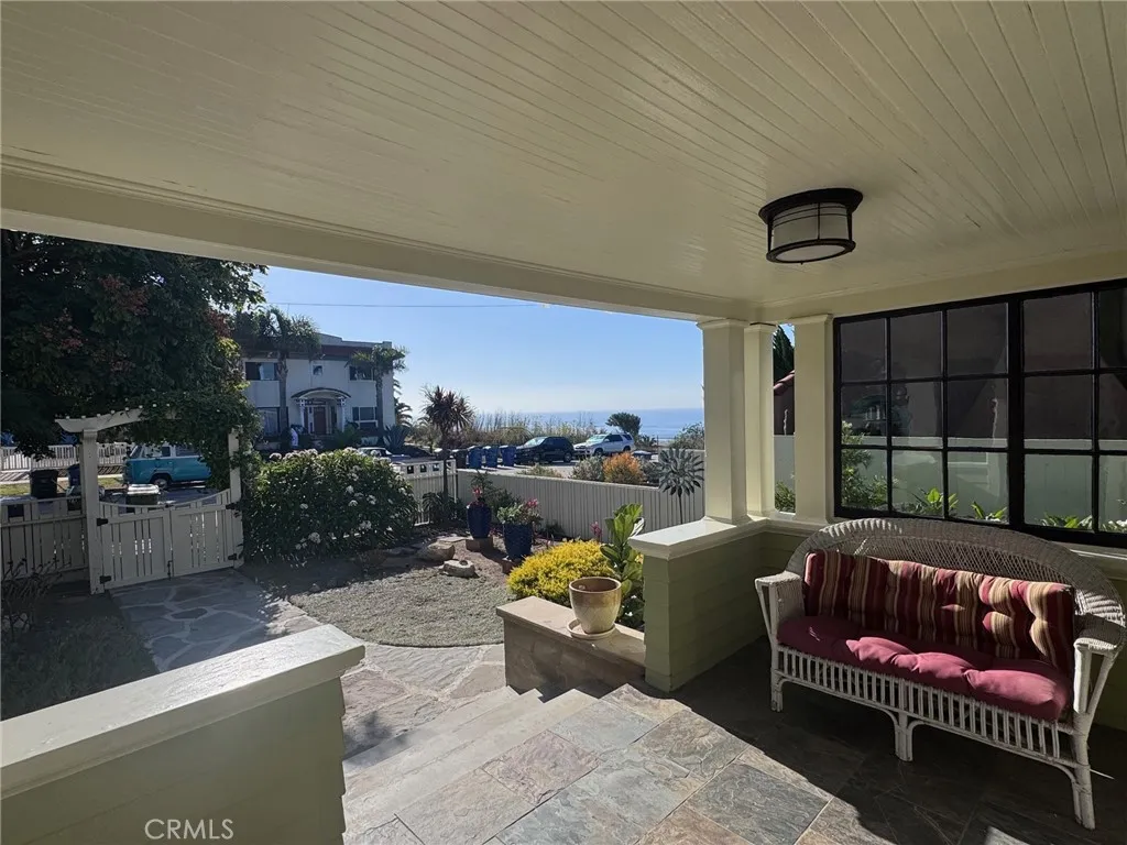 From Carolina you enter through the gated arbor into the garden courtyard that is landscaped with lush plants and natural stone. There are ocean views from the courtyard and from various rooms inside the 3 bed 1.5 bath home. Features include a formal stone entry that flows into a large family room with an abundance of natural light due to the 10’ high coffered ceilings, and large windows that afford views of the ocean. At the front of the house is an enclosed sunroom off the front porch. Other architectural features are French doors, crown-moulding, original doors and hardware, a fireplace (mantle facade), and loads of architectural charm take you back in time to 1920 when this house was originally built.