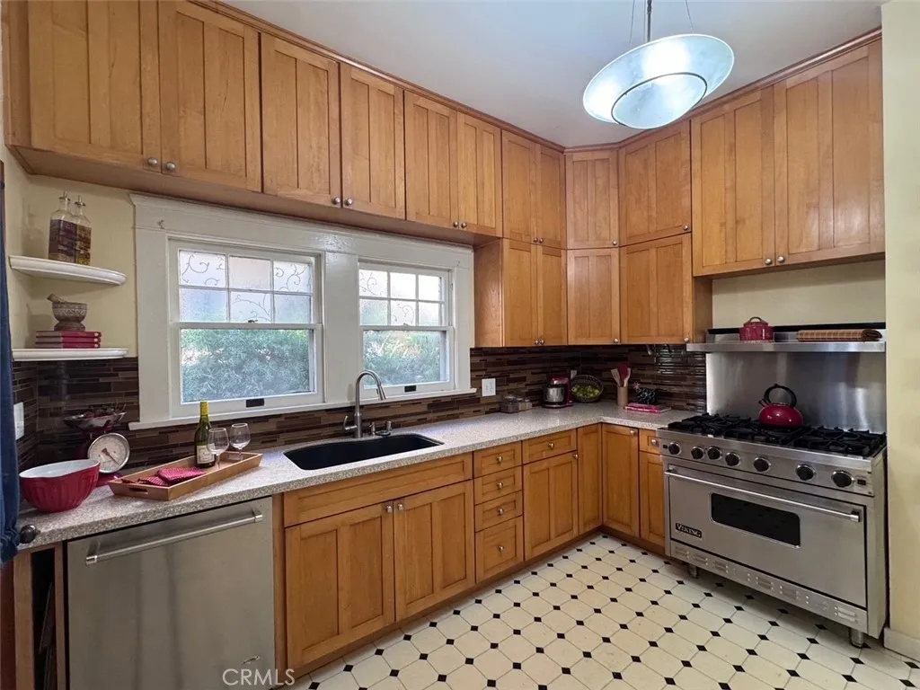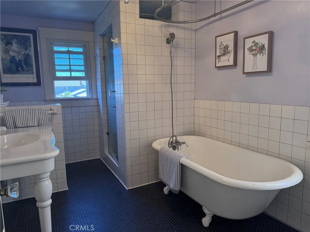 The 3 bedrooms and full bathroom are upstairs, with a small room off of one of the bedrooms with views of the ocean that could be used as a home office. The kitchen features hardwood cabinetry, Caesar Stone counters, a Viking 6-burner range and a laundry room off of the kitchen with access to the back yard. An expansive formal dining room with a built-in hutch is off the main hallway adjacent to the kitchen. The interior of the house has been updated over the years while preserving its historic character and exterior curb appeal. A fully remodeled bathroom with a classic hexagon floor tile, porcelain tiled walls, a claw-foot tub, and copper plumbing. There is forced air heating, upgraded electrical breakers, tankless water heater and a pitched roof.