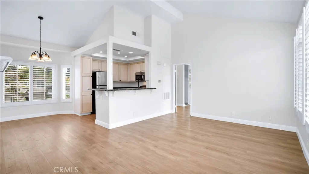 Upstairs End Unit 2 bed 2 bath Condo in the Seagate Colony Community. Open floor plan with high ceilings, plenty of natural light, plantation shutters, new laminate flooring throughout, updated kitchen with granite counters, and stainless steel appliance. Spacious dual master suites with high ceilings, and tons of privacy. Private laundry room off the patio with washer/dryer included. 1 car detached garage in addition to 1 reserved parking space, and plenty of guest parking. Community amenities include pool, spa, clubhouse, parks, walking and hiking trails. Conveniently located near the 73 toll, and Aliso Viejo Town Center.