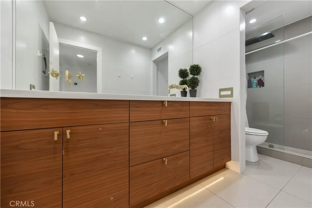 Within walking distance to UCI and University Town Center, room to rent in SHARED furnished luxurious condo with high quality custom upgrades. Elegant kitchen upgraded with granite countertops, Newport Brass fixtures, Osmosis water filter system, boiling hot water dispenser, Bosch range hood, hidden paneled Bosch dishwasher and trash compactor, glass gas 4 burner cooktop, building oven with microwave functionality, built-in refrigerator with freezer, Euro-style white high gloss cabinets with soft close hardware and solid brass handles. Custom designed Bathroom covered with floor to ceiling & wall to wall in 24×24 porcelain tile, quartz countertops, white cabinets, Kohler modern square sinks, ceiling high mirror, and Newport Brass mirror fixtures. Walk-in shower separated by floating pieces of glass. The shower fixture was imported from Italy and it is recessed into the tile, with the option to use an overhead waterfall or the shower hose. Spacious bedrooms with built-in closet and large windows for natural light. Hallway has additional linen cabinets. Built in surround sound speakers for the best entertainment when watching TV. Spacious Living Room with fireplace. Inside laundry. Newer energy efficient AC. Double paneled windows with Hunter Douglas shades. 24×24 tile flooring throughout, recessed lights with state of the art non-touch switches, retractable wall plugs. Private balcony off the dining area with spacious garden and delightful flowers. Quiet inside-tract location among beautiful trees with peaceful greenbelt view. Association amenities include pool, basketball court, tennis court, and plenty of greenbelts and walking trails.