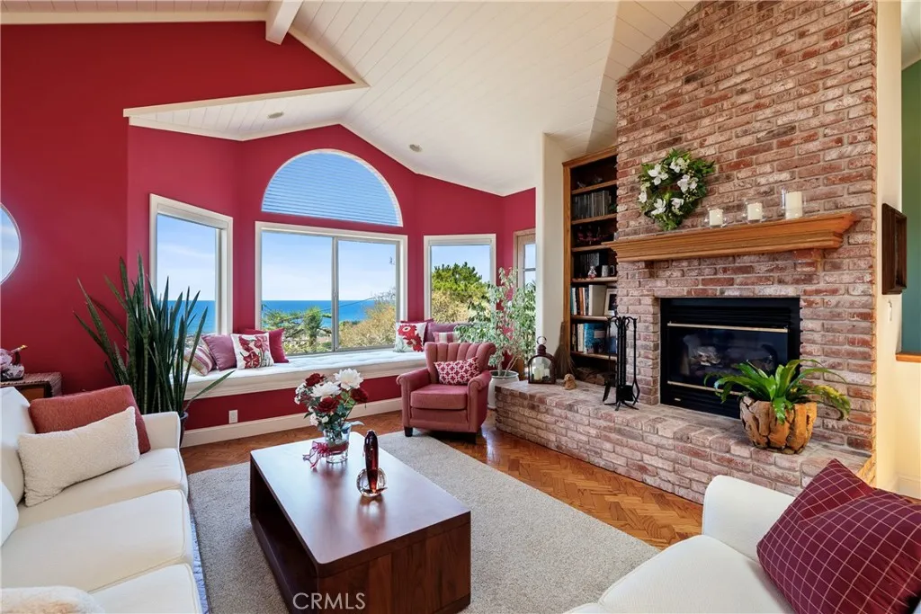 Custom built redwood home designed to capture sweeping ocean views from nearly every room. The open floor plan blends kitchen, dining, and living spaces with walls of westerly windows framing the Pacific, while easterly windows and decks look out over peaceful private gardens. The kitchen is a true centerpiece with custom Corian countertops, handcrafted tile backsplash, a garden window, 36-inch five burner cooktop, custom wood floors, and a shiplap ceiling, all opening seamlessly to the living areas. The living room invites gatherings with its woodburning fireplace, brick hearth, built-in bookcases, and massive window seat. A dumbwaiter provides effortless convenience with an access door on each level, perfect for moving groceries and household items with ease. The primary suite is a private retreat with a gas fireplace, two walk-in closets, spa-like bathroom with jetted tub, separate shower, dual sinks, and a private deck overlooking the Pacific. A second oversized window seat adds warmth and character to the suite. Situated on three lots, the property enjoys drought-tolerant landscaping sustained by an artesian-fed water capture and storage system. Every level features a deck to take in the views, while the concrete tile roof, cobblestone-style driveway, and two-car garage enhance its quality and appeal. Built by sought-after Brian Wilson. Located in one of the most sought-after neighborhoods near both the ocean and Fiscalini Ranch, this one-of-a-kind home pairs custom craftsmanship with coastal living at its finest.