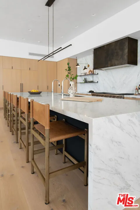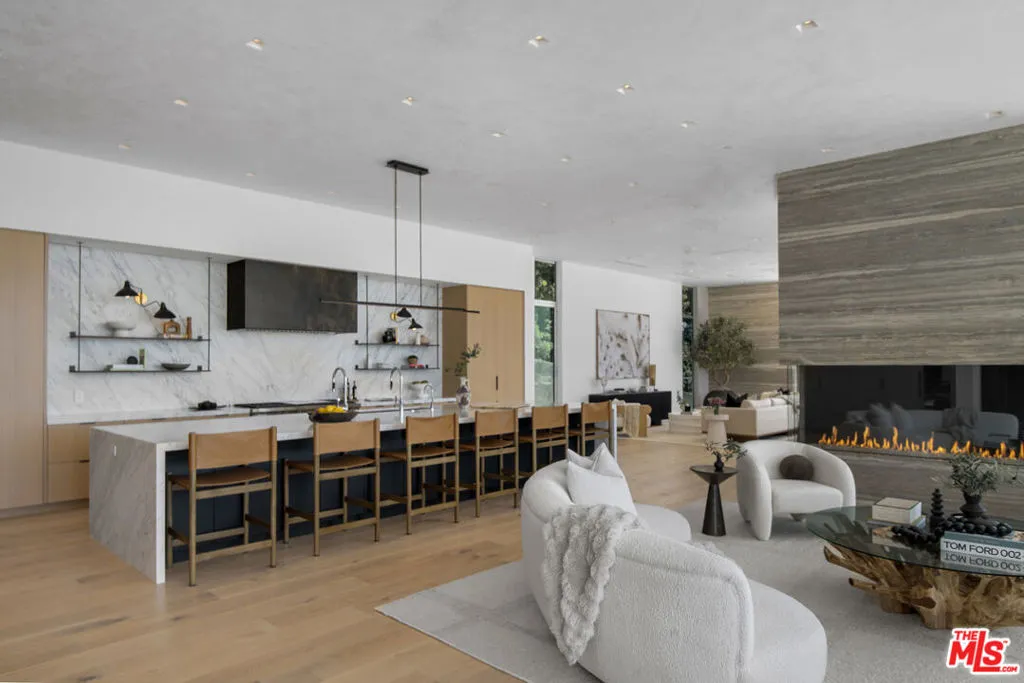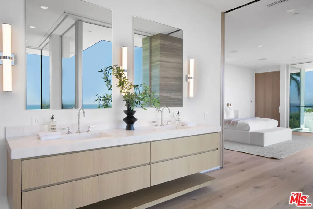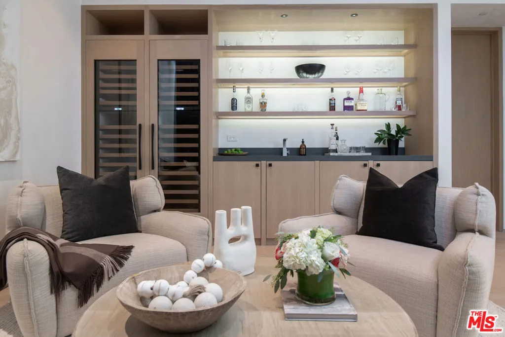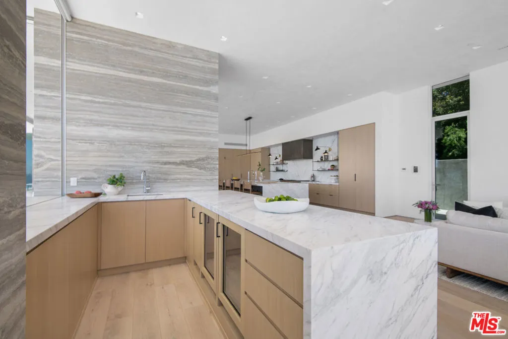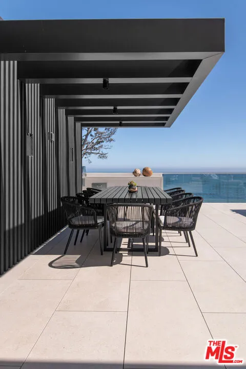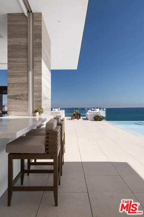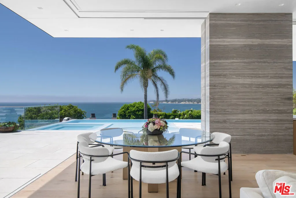 New Construction | 2025 Mid-Century Modern Masterpiece with Breathtaking Ocean Views.Experience unparalleled luxury in this newly built, architecturally stunning mid-century modern home, perched on a bluff above Malibu Cove Colony. Nestled on the beach side of the Pacific Coast Highway, this estate boasts panoramic coastline views, offering an exclusive coastal lifestyle. Designed for effortless indoor-outdoor living, the main entrance showcases a stunning floor-to-rooftop water wall alongside a grand 12-foot glass pivot door. The open-concept great room boasts soaring 12-foot ceilings, a dramatic bay fireplace, and floor-to-ceiling glass sliders that seamlessly vanish into sophisticated stone pocket walls. Step onto the expansive wraparound deck, where a shallow wading/Baja area, Jacuzzi, and an impressive 93-foot lap pool come together to create the ultimate private retreat.This 7,356 sq. ft. residence offers five spacious bedrooms, six and a half bathrooms, a home office, gym (or 5th Bedroom), and a stylish lounge bar area with a media room in the lower level. Wake up to breathtaking ocean views from the main level, including the gourmet kitchen, where a massive 18-foot marble island and top-of-the-line appliances and wine fridge, set the stage for both intimate meals and grand entertaining.The primary suite, located on the main level, serves as a tranquil retreat with a spa-inspired bathroom, walk-in closet and studio/office. The expansive great room opens fully to the zero-edge infinity pool and outdoor entertainment space, where a built-in barbecue/outdoor kitchen, fire pit, and walk-up indoor-outdoor bar create a resort-like ambiance.Additional highlights include:* Floor-to-ceiling windows that bathe the interiors in natural light and ocean views* 12 x12-foot glass entry with stunning ocean views* 13-foot stone water wall at front entrance* Recessed lighting, skylights, and premium hardwood, stone, tile, and carpet finishes* Secure, gated entry with video intercom and an advanced security system* Laundry room with washer/dryer* Attached garage with guest parking. This Malibu masterpiece offers an unrivaled blend of elegance, comfort, and coastal sophistication. Don’t miss your chance to call 26946 Pacific Coast Hwy home.
