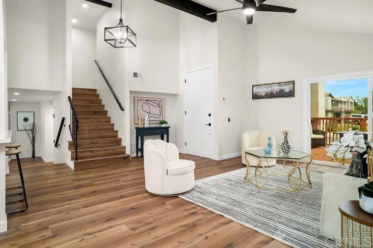 Incredible opportunity to own this gorgeous, contemporary fully updated home! It features 4 bedrooms, 3 full baths, & open concept. The sweeping canyon view is breathtaking. Add new landscaping, pergola & luxurious pool upgrades. Inside features a masterful remodel for multigenerational living or elevated hosting. Large lot extends past the back fence which could be a playground, firepit or more. Situated in the highly desired Poway school district. This is a beautiful home!
