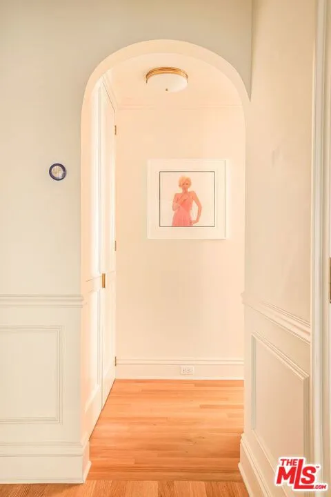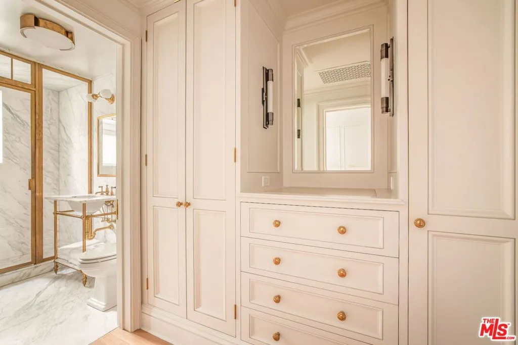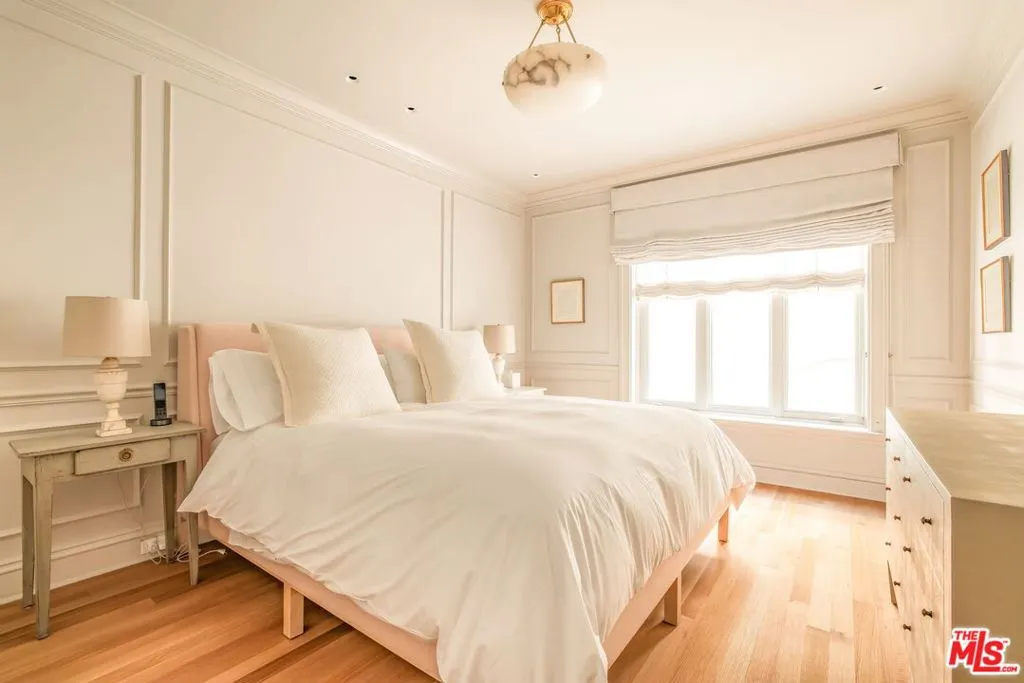 Presenting the most exquisitely designed, thoughtfully renovated residence in West Hollywood’s full-service Granville Towers. This magnificently renovated fourth-floor home spans 1,177 square feet with one bedroom and one and a half bathrooms, and enjoys three exposures that fill the home with natural light throughout the day. No expense was spared in its transformation, from custom arches, molding, and paneling to a chef’s kitchen with bespoke cabinetry and marble countertops, and a marble bathroom with custom brass shower enclosures and fixtures. The powder room is adorned with hand-painted de Gournay wallpaper, while abundant closet space, Bertazzoni appliances, and an in-unit stacked washer and dryer complete this extraordinary space. The top-to-bottom renovation includes new white oak flooring, plumbing fixtures by Catchpole & Rye, and Forbes & Lomax light switches. Lighting fixtures by Jamb London, Collier Webb, Kelly Wearstler, and Urban Archaeology are featured, as well as designer floor tile from Exquisite Surfaces. Custom linen treatments enhance every window. The Granville Towers is a historic French Normandy style condominium building in the heart of West Hollywood, originally built in 1930. Known for its dramatic turrets, lush gardens, and Old Hollywood charm, it has long attracted celebrities and creatives seeking privacy with character. Combining classic architecture with modern amenities, it remains one of the area’s most iconic and prestigious residential addresses. Residents of The Granville enjoy gated underground parking, a secure gated entrance, and the services of a doorman, offering both safety and convenience. Perfectly situated, the building is close to West Hollywood’s acclaimed restaurants, supermarkets, and vibrant nightlife. This unit can be sold fully furnished.