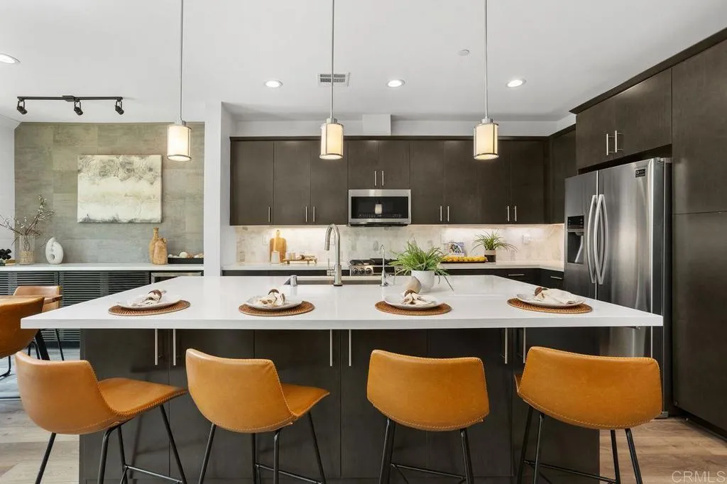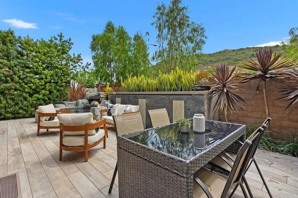 PRICE REDUCTION!!!Magazine worthy Home… MUST see it with your own eyes.!! Nestled in The Preserve Community of Carlsbad—just a short distance from Carlsbad State Beach, shopping, and dining—this home offers the ideal combination of modern luxury and natural serenity. The expansive open-concept floor plan blends elegance, warmth, and functionality, featuring floor-to-ceiling cabinetry, wide-plank wood-like flooring, a cozy fireplace, a custom-built-in dry bar with beverage refrigerator, and elegant shiplap wall treatments throughout. The built-in ground jacuzzi with fire bowls and a custom water wall feature creates a private outdoor oasis ideal for both relaxation and entertaining. This home is loaded with upgrades, including a solar power system, whole-house fan, full-home water filtration, and Hunter Douglas custom window treatments. The chef-inspired kitchen serves as the heart of the home, boasting rich cabinetry, top-tier stainless steel appliances, a sprawling center island with quartz countertops, an oversized sink with pull-down faucet, stylish pendant lighting, and a sleek stone backsplash. Oversized sliding glass doors frame beautiful mountain views and open to your serene backyard retreat. Upstairs, you’ll find three bedrooms and a spacious loft with built-in cabinetry, offering a flexible space for any need. The primary suite showcases designer recessed wood wall paneling and a spa-inspired en-suite bathroom with dual vanities, a soaking tub, a separate walk-in shower, LED custom controlled mirrors, and a custom walk-in closet. The Preserve Community offers resort-style amenities, including a beach-entry pool with lap lanes, a jacuzzi, BBQ area with ample seating, outdoor lounge with fireplace, fitness center, gated dog park, playgrounds, parks, and hiking trails, all surrounded by approximately 156 acres of open space along scenic Quarry Creek, with top-rated schools nearby.