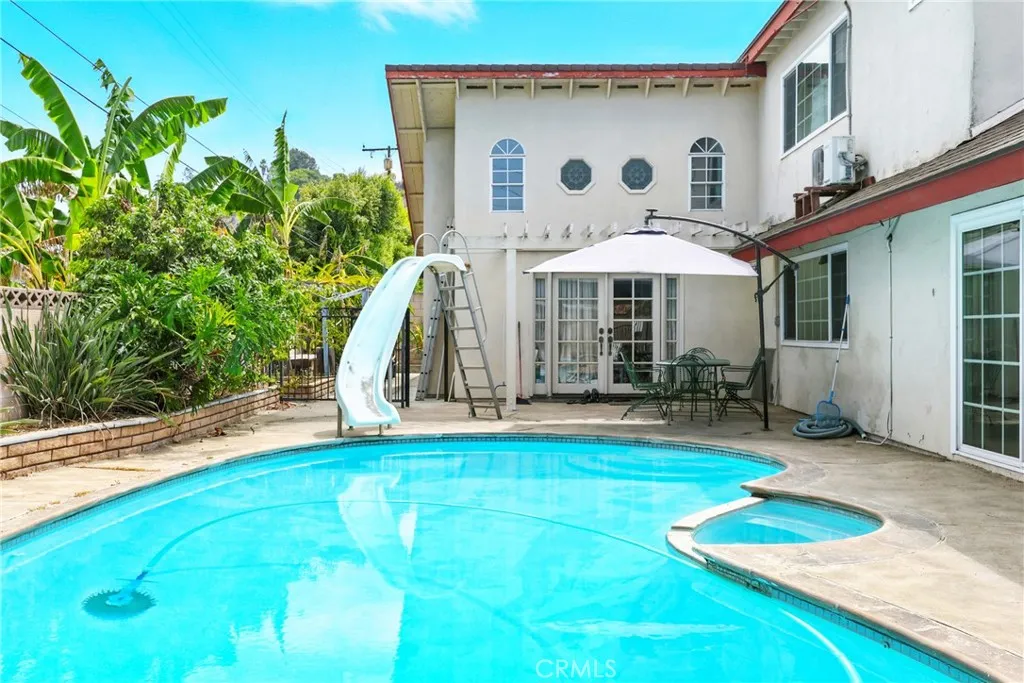 Step outside to discover your private resort-style backyard featuring a large swimming pool, mature fruit trees, and ample space for entertaining and relaxation. The professionally maintained turf front yard provides attractive curb appeal with minimal upkeep.