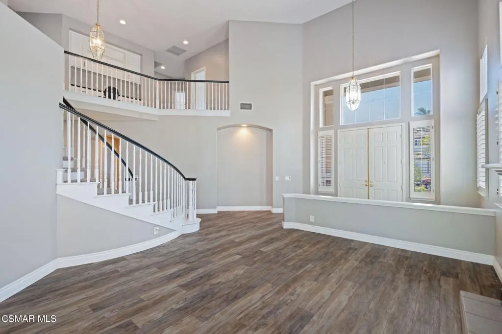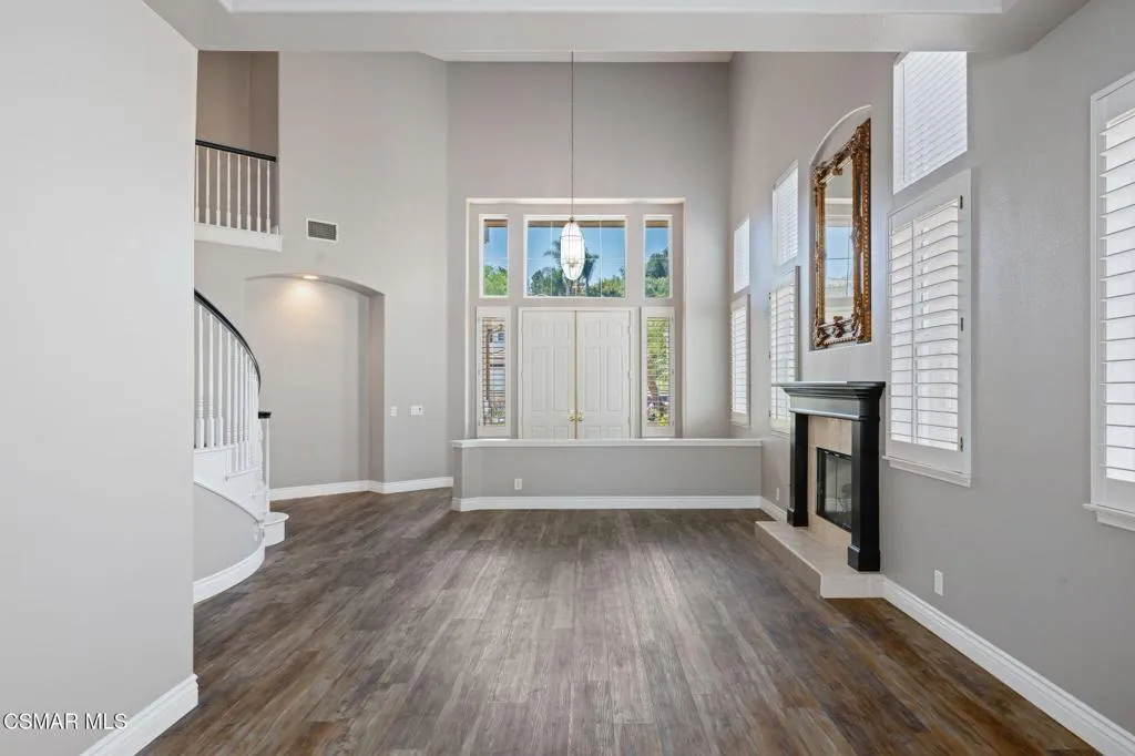 This beautifully upgraded Wood Ranch home offers 5 bedrooms, 4 bathrooms, and 3,639 sq ft of refined living space, along with a private backyard and seamless indoor-outdoor living designed for easy entertaining. Ideally located near trails, parks, golf, and much more, this residence combines comfort, elegance, and convenience. Step into a grand foyer with soaring ceilings and natural light that flows into the formal living and dining rooms–perfect for gatherings.The gourmet kitchen features Bosch appliances, a Sub-Zero freezer, granite counters, a center island with seating, and a walk-in pantry, opening to a warm family room with fireplace and custom built-ins. The main suite is a private retreat with its own fireplace, spacious walk-in closet, and a serene balcony. Just off the suite is a flexible bonus room–ideal as a home office, gym, nursery, or quiet reading space. The spa-inspired bath offers dual vanities, a soaking tub, and an oversized walk-in shower.Upstairs, apart from the main suite, there are three additional spacious bedrooms–one with an ensuite bathroom and two with access to a Jack-and-Jill bath. All upstairs bedrooms feature ceiling fans, generous closet space, and plenty of natural light. The home also offers dual-zoned A/C and plantation shutters throughout for style and comfort year-round.Out back, enjoy a newer built-in BBQ island with sink, fridge, stamped-concrete patio, a plunge spa with waterfall feature, and a comfortable seating area for relaxing or casual outdoor dining. Mature landscaping provides summer privacy, while winter reveals northern mountain views.The main level includes a well-appointed bedroom with an adjacent full bathroom–ideal for guests or multi-generational living–as well as a full laundry room with sink and storage. Elegant hardwood flooring runs throughout, and a spacious three-car garage offers built-in cabinetry for organized storage.This prime location is just minutes from Wood Ranch Golf Club for golf, dining, and social events, Rancho Madera Community Park with tennis courts, basketball courts, playgrounds, picnic areas, and open green space, the highly regarded Wood Ranch Elementary School, and the renowned Ronald Reagan Presidential Library. Residents also enjoy access to miles of scenic hiking and biking trails, a community pool and spa for relaxing and recreation, and the peace of mind of 24-hour security. A compelling blend of elegance, comfort, and the best of Wood Ranch living.