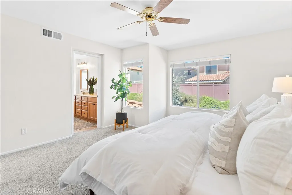Welcome to this beautifully upgraded move-in ready home featuring paid off solar, PEX piping, EV charging, and the rare convenience of dual primary suites including one on the main floor. From the moment you step inside, you’re greeted by soaring two story ceilings, abundant natural light, and a layout designed for both everyday comfort and effortless entertaining. The interior boasts a rich blend of hardwood and luxury vinyl flooring, complemented by plush carpet in the upstairs bedrooms. Thoughtful details like custom crown molding, plantation shutters, and designer paint tones create a warm and inviting atmosphere, while the brand new A/C system and ceiling fans throughout ensure year round comfort. The chef inspired kitchen features a custom backsplash and flows seamlessly into the open concept living and dining areas. French doors lead to a fully paved low maintenance backyard your private retreat complete with a built in fireplace and shaded gazebo, perfect for entertaining guests or enjoying cozy evenings at home. Upstairs, discover additional upgraded spaces including an office with wainscoting, a second primary suite, and generous storage. The two car garage is finished with epoxy flooring and a full driveway, offering both function and style. Every detail has been considered in this exceptional property from its energy saving features to its flexible floor plan and high end finishes. The entire interior of the home was also just recently painted. This is more than a home it’s a lifestyle upgrade. Schedule your showing today!