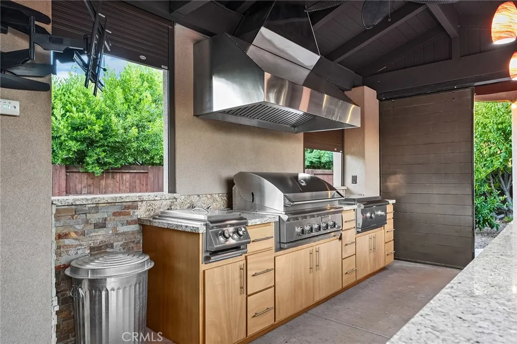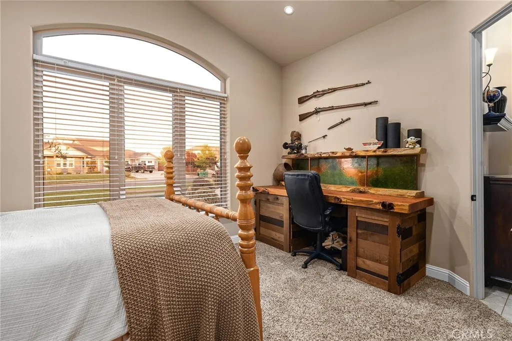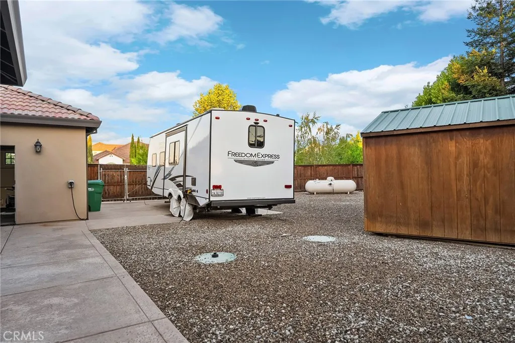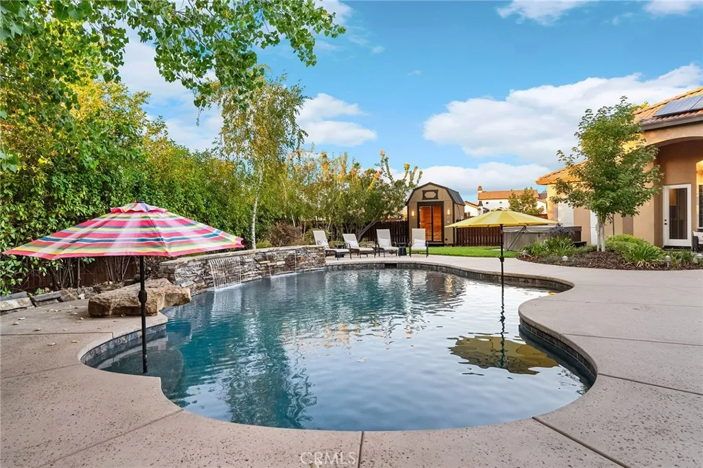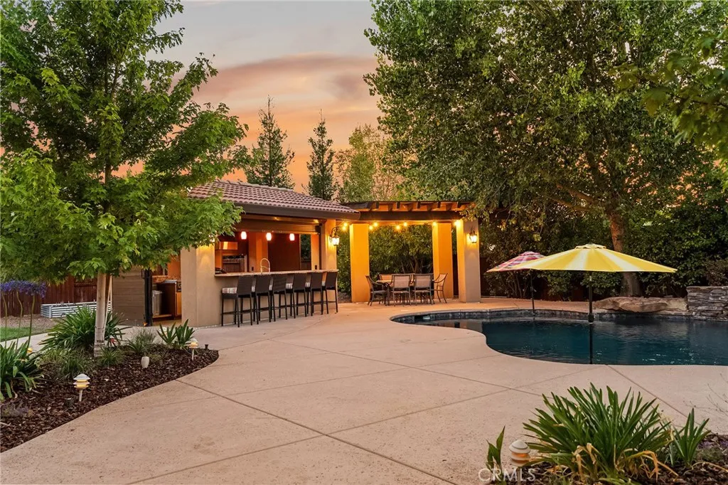 Your DREAM HOME awaits, in the prestigious Sierra Moon Subdivision! This luxurious Mediterranean-style home offers 4 bedrooms, 3 baths, and an expansive 3,264 sq ft of refined living space. Upon walking up to the home, you will be greeted by a massive rustic wood front door that opens up to a grand entryway with art niche. The open-concept design seamlessly connects the kitchen, dining, and great room, where rustic beamed ceilings and a dramatic stacked stone fireplace create a warm, inviting ambiance. The heart of the home is a gourmet chef’s kitchen featuring gorgeous granite countertops, all stainless-steel appliances, including a Kitchen Aid 6 burner gas stove! There is a large breakfast bar island, tons of prep space, and a massive walk-in pantry—perfect for entertaining or everyday culinary adventures. A private double-door study provides a quiet retreat, while the oversized laundry room offers abundant cabinetry and workspace. The split floor plan ensures privacy, with the Primary Suite and guest bed/bath on one side and two additional guest rooms with a shared bath on the other. You will love that the Primary Suite has quick access to the jacuzzi and pool area along with large walk-in closet, 2 separate vanities, oversized jacuzzi tub, and walk-in shower featuring 3 shower heads! Step outside to your PERSONAL RESORT: a sparkling pool with stacked rock waterfalls and umbrella-ready bench seating! Incredible outdoor kitchen with commercial-grade BBQ & hood, additional burners, flat top grill, sink, refrigerator, ice maker, with granite countertops creating 11 feet of full bar seating, and custom cabinetry. You won’t believe the protective metal shutters and full sliding doors that will fully enclose & shield the whole space! Even a spot for your TV! Unwind in the 8-person Jacuzzi or huge 12 x 8 ft sauna that can hold up to 8 or 9 people! Certainly, a wellness center in your own backyard! Grow your own produce in the many raised garden beds conveniently hidden behind the kitchen. Don’t forget the 36 panels of OWNED SOLAR to help with the bills! RV enthusiasts will appreciate the dedicated parking area with hookups and dump station. Need more room for more toys? Just take a look through the privacy gate, which is neatly graveled and ready to house much more! There is ample storage in the additional 10×16 ft. shed beyond the garage. This home truly has something for everyone and offers an unparalleled lifestyle of comfort, luxury, and functionality.