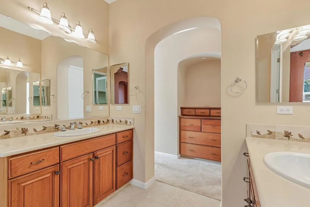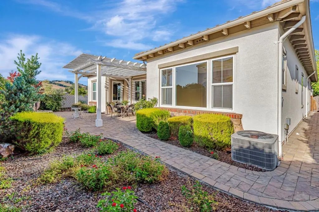 Welcome to this sought-after single-story home offering 2,579 sq. ft. of beautifully designed living space, where elegance meets comfort. Situated on a desirable corner lot revealing picturesque mountainside views, this residence offers exceptional curb appeal and showcases true pride of ownership. Inside, youll find a thoughtfully designed layout featuring 4 bedrooms and 3 full bathrooms, including a convenient Jack and Jill bedroom setup. The kitchen is appointed with granite countertops, stainless steel appliances, and pristine cabinetry that exudes a like-new sophistication. Rich walnut hardwood floors and elegant crown moulding throughout create a timeless sense of luxury. Step outside to your private backyard retreat, complete with pavers and a charming pergola, perfect for entertaining or simply unwinding while taking in the serene views. This home is located within an exclusive gated community that offers an unparalleled lifestyle. Enjoy access to resort-inspired amenities including a private golf course, swimming pool, clubhouse, basketball and tennis courts, bocce ball, and more. Experience the perfect blend of luxury, comfort, and community living!