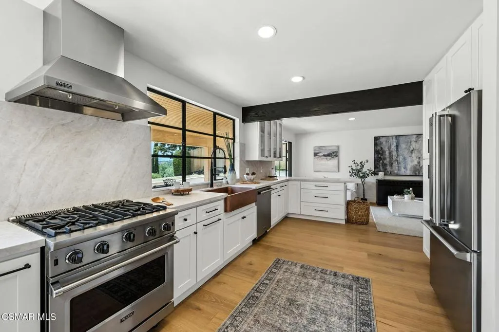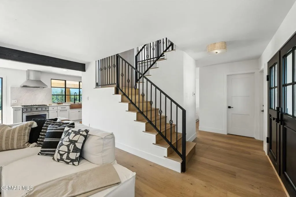 Welcome to 30670 Passageway Place, a stunning residence on Lake Lindero where modern elegance meets everyday comfort. Designed with a perfect balance of style and function, this three-bedroom, three-bath home offers light-filled interiors, luxurious finishes, and a setting that embraces both relaxation and recreation.A private entry with custom Pinky’s iron doors opens into expansive living spaces filled with natural light. White oak hardwood floors and wall details provide warmth and sophistication, while thoughtfully chosen designer lighting fixtures create an inviting atmosphere both inside and out. Large windows frame views of the surrounding landscape, allowing natural beauty to flow seamlessly indoors.At the heart of the home, the living area centers around a sleek fireplace that enhances both comfort and ambiance. The layout connects effortlessly to the dining space and a chef’s kitchen that has been appointed with Viking professional appliances, custom cabinetry, and elegant stone countertops. Designed to be both practical and beautiful, this kitchen elevates daily living while also serving as the perfect backdrop for entertaining.The primary suite is a private retreat where every detail speaks to luxury and comfort. A spa-style marble bathroom with dual vanities and a walk-in shower creates a serene atmosphere, while a private deck overlooking Lake Lindero offers the perfect setting for morning coffee or evening sunsets. Two additional bedrooms and two additional full bathrooms provide ample space for family, guests, or a home office, all finished with the same attention to detail.The home is complemented by features that ensure both comfort and efficiency, including a modern HVAC system, tankless water heater, and high-quality windows and doors throughout. Outdoors, the property is enhanced by professionally designed landscaping, creating beautiful spaces for entertaining, relaxing, or simply enjoying the California lifestyle. Newly installed exterior lighting highlights pathways and gardens, making the grounds as inviting at night as they are during the day.Life at Passageway Place includes access to the amenities of the Lake Lindero community, offering tennis courts, a golf course, and private lake enjoyment. Beyond the community, Agoura Hills provides boutique shopping, local dining, hiking trails, and close proximity to Malibu’s beaches just beyond the canyon. Families will also value the home’s location within the highly regarded Las Virgenes School District, known for its academic excellence and community spirit.Every finish and feature in this property has been selected to create an environment that feels both elevated and livable. White oak floors and wall details bring a touch of natural sophistication, while custom Pinky’s iron doors and windows frame views and invite light throughout the home. The balance of indoor and outdoor living spaces ensures the home functions beautifully for quiet evenings, festive gatherings, or weekend relaxation.30670 Passageway Place is more than just a residence; it is a showcase of thoughtful design, luxury finishes, and a lifestyle defined by beauty and comfort. With lake views, elegant living spaces, and a premier location, this home offers a rare opportunity to experience the best of Agoura Hills in a setting that is timeless, welcoming, and ready to be enjoyed.