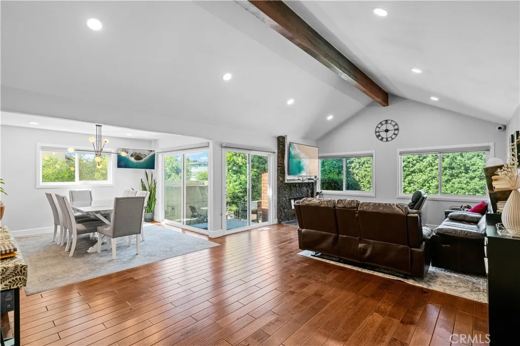 This stunningly updated home truly has it all. Thoughtfully designed for modern living, this beautifully maintained single-family residence blends elevated style with effortless comfort at every turn. Boasting four spacious bedrooms, three chic bathrooms, and a sun-drenched open-concept layout with soaring vaulted ceilings, the home feels bright, airy, and instantly welcoming. Expansive windows flood the space with natural light, highlighting gleaming floors and refined finishes throughout.