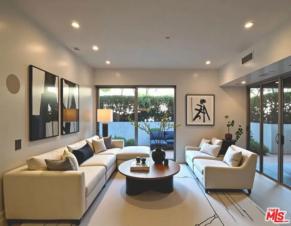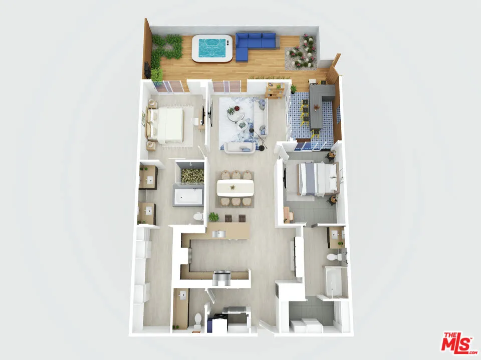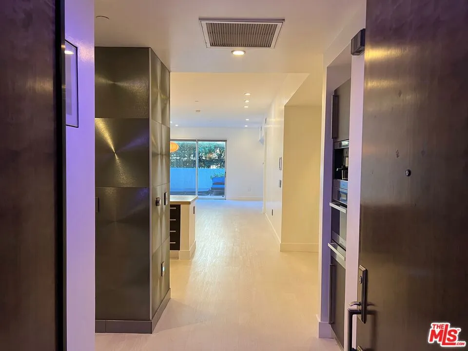 LOOKING FOR BACKUP OFFERS. Appraisal performed 6/2025 with $1.47M valuation, attached to listing. Highly desirable ground-floor garden residence in starchitect Zoltan Pali’s iconic “Blue Velvet” building. This former model unit offers 2 bedrooms and 2.5 baths and delivers a level of indoor-outdoor living that is almost impossible to find in the city. A massive 400+ square foot private veranda spans the full width of the home, creating a seamless extension of the living space and making it perfect for entertaining, dining al fresco, relaxing with morning coffee, or unwinding in the included Hot Spring saltwater spa per seller, the only permitted spa in the building. Priced strategically below a recent closed comparable in the building (#104 at$1.47M), this home offers exceptional value for one of the area’s most sought-after architectural residences. Inside you’ll find soaring ceilings, oversized walk-in closets, and two luxurious en-suite bedrooms. Designer upgrades total more than $100,000 and include a Miele built-in coffee system, steam oven, and microwave drawer, a professional-grade Bertazzoni range, a Thermador built-in refrigerator, custom Italian cabinetry with upgraded glass fronts, Caesarstone countertops, rain shower,jet tub, and digital shower controls, custom Closet World organizers in both suites, Philips Hue smart lighting with added recessed lights, EV charging station, upgraded outlets and switches, and in-unit laundry hookups. A powder room for guests is conveniently located off the main living space. The building offers controlled access, two gated parking spaces, a large private storage unit, and a resident-only rooftop sundeck and reading lounge. Perfectly positioned just off Santa Monica Boulevard in the heart of the West Hollywood lifestyle, with a Walk Score of 88, this home is steps from Melrose Place, renowned restaurants, boutique shopping, high-energy nightlife, trendy coffee spots, gyms, and the Sunday Farmers Market. Optional patio furniture and bar may be included at no additional cost.