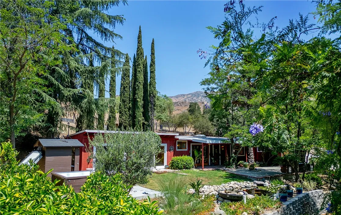Whether you’re a horse enthusiast, a creative soul looking for space and inspiration, a nature lover, or simply someone who craves privacy and peace – this is a property that speaks for itself. The charming main residence offers cozy living with a high efficiency wood burning fireplace for winter nights, 3 bedrooms with 1 being an en-suite plus 1 more bathroom. Newer roof, HVAC, electrical and interior paint. Infrastructure to add solar. Fire suppression system. The property is dotted with mature oaks, pine, eucalyptus, cotton wood, pepper trees, native landscaping, and open skies that make every sunrise and sunset unforgettable. 7 citrus trees, blackberries, strawberries, pomegranate, plum and fruit bearing olive trees for the gardener – complete with a greenhouse with water and electricity plus a chicken coop. Magical golden hours when the hills light up with the setting sun, leading to an evening of relaxing in the jacuzzi and infrared & steam sauna, overlooking the babbling Koi pond. For the equestrian, currently house 4 horses with the possibility of 6-8 more near the 60 foot round pen, direct access to hundreds of miles of trails in Angeles National Forest for beginner to advanced riders: Fascination Springs Trail, Doc Larsen Trail, Eby Canyon (Pipeline)Trail, Rattlesnake Trail. Saddle up and ride! Peaceful. Secluded. Inspiring. Properties like this rarely come available—don’t miss the opportunity to own a piece of California’s hidden ranch community, just beyond the city limits. Getaway to the mountains yet just 20-30 minutes to Burbank, Glendale, Pasadena and DTLA.