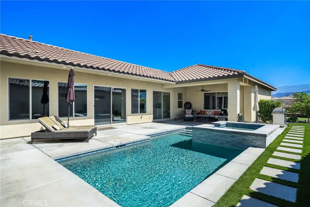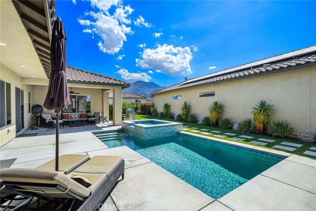 Designed for comfort and elegance, the home showcases a resort-style backyard perfect for entertaining or relaxing. Enjoy a covered patio, custom Saltwater Pebble Tec pool and raised spa with water features, BBQ, and a generous grassy lawn—all set against a stunning mountain backdrop. Inside, the chef’s kitchen is a true showpiece, Quartz countertops with an oversize waterfall island, high-end stainless-steel appliances, double ovens with built-in air fryer. The spacious living room is enhanced by custom cabinetry and provides sweeping views of the brand-new pool and spa. Additional highlights include 19 PAID solar panels, builder upgrades including custom lighting throughout, a full two-car garage, and a separate golf cart garage. Residents of the Signature community enjoy exclusive access to a private clubhouse, state-of-the-art fitness center, resort-style pool and spa, BBQ areas, and world-class golf and tennis facilities. All this, just a short walk from the acclaimed Ernie’s Restaurant. Investment Opportunity: Signature at PGA West is one of the few communities in La Quinta with detached homes that are zoned for short-term rental (STR) permits—a rare opportunity to generate income during festivals and throughout the year. THIS IS THE LAST NEWER COMMUNITY AVAILABLE IN PGA WEST THAT ALLOWS SHORT TERM RENTALS.
