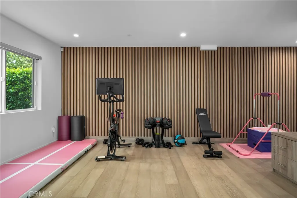 The layout is equally impressive, starting with an unmatched entertainment level spanning forty-four feet of soothing ambiance from softly sunlit windows and a statement-making backdrop of white oak slats that adds organic depth to its modern minimalist vibe.