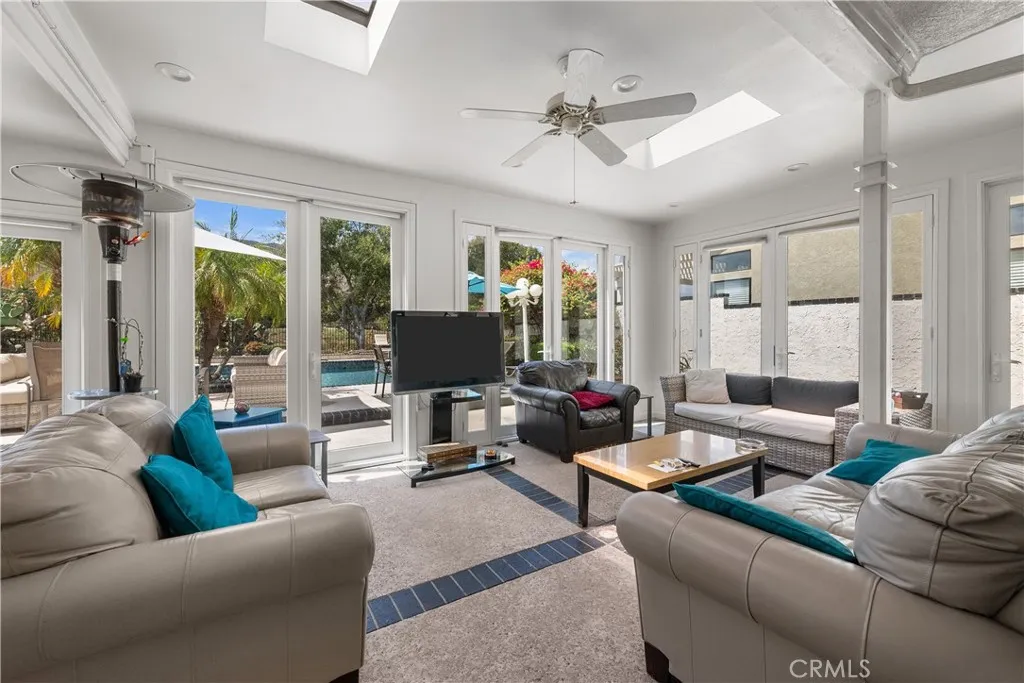 The resort lifestyle continues outdoors with an entertainer’s paradise: a sparkling pool and spa, gas fire pit, and a spacious garden patio area—perfect for hosting gatherings or enjoying tranquil evenings under the stars.