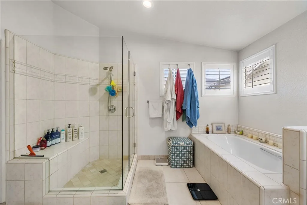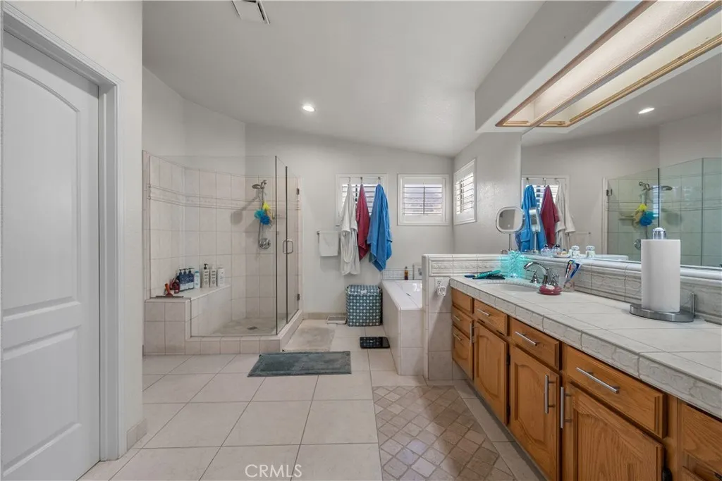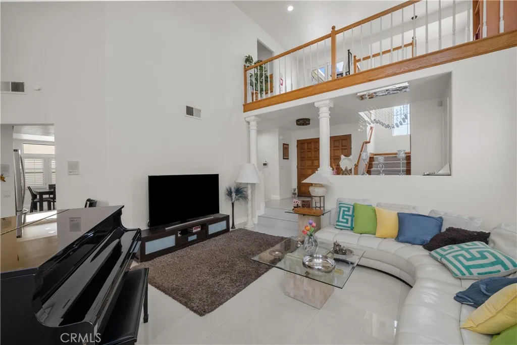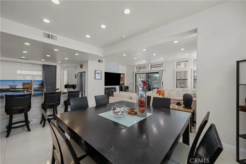 Step inside to soaring cathedral ceilings in the formal living and dining rooms, beautifully accented with upgraded Maximo white tile flooring. A dual-sided fireplace, plantation shutters throughout, and recessed lighting create a warm yet sophisticated ambiance.