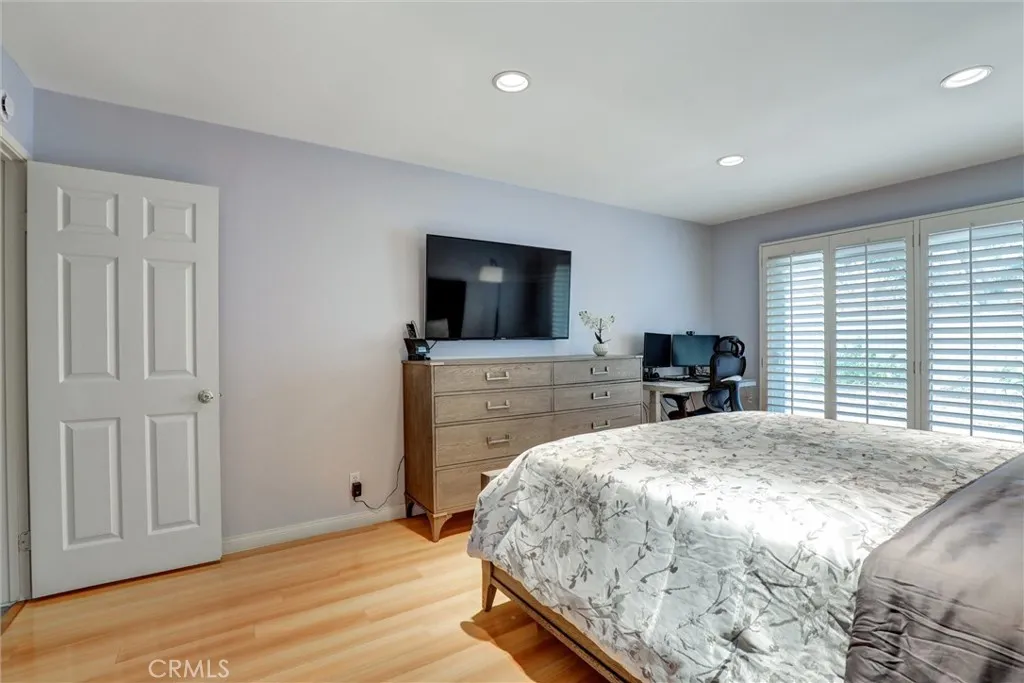 The expansive primary suite features beautiful laminate flooring, a spacious en suite bath with multiple rooms for added convenience, and direct access to the backyard. Two generous closets with built-in shelving provide exceptional storage. One of the secondary bedrooms even features its own private patio making it a peaceful place for guests and family.