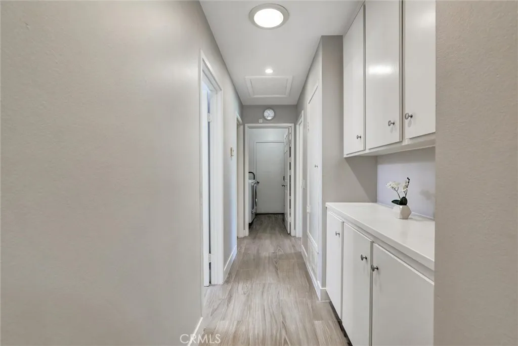 Both bathrooms have been recently upgraded with modern finishes. A separate laundry room, complete with washer and dryer, adds convenience. Other key upgrades include new attic insulation and air ducts for improved energy efficiency, along with an entryway closet for coats, shoes, and additional storage.