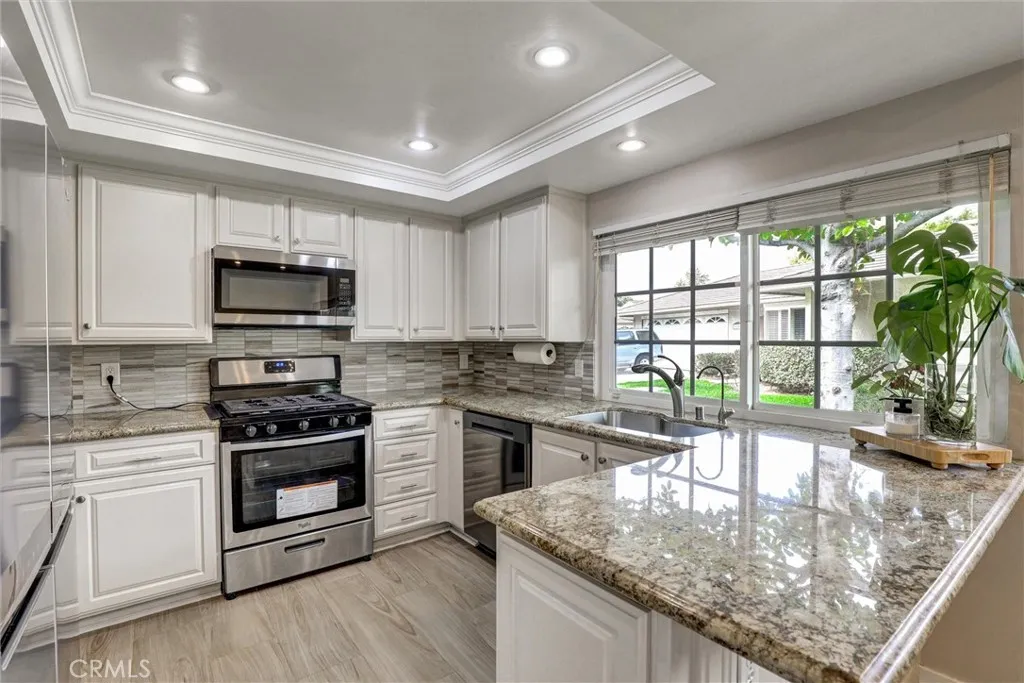 At the heart of the home is the thoughtfully updated kitchen, where form meets function. Enjoy granite countertops, a stylish tile backsplash , refinished cabinetry, and brand-new energy star stainless steel appliances. A cozy breakfast nook invites casual dining, while the formal dining area with views of the backyard—sets the stage for memorable gatherings. The kitchen also includes a reverse osmosis water filtration system for clean, crisp drinking water.