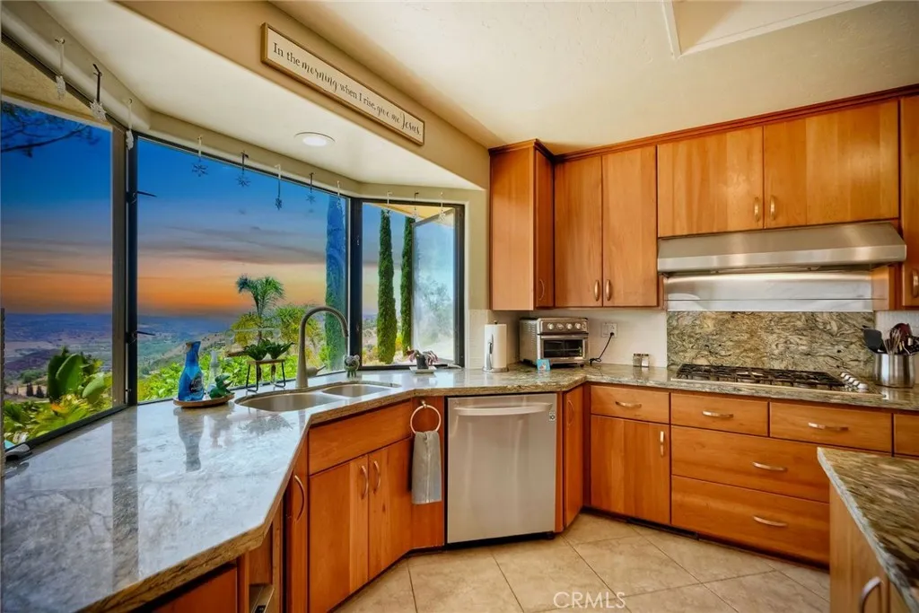 Welcome to this stunning, Mediterranean style gated home! Upon driving through the Solar charged Automatic Gate and up the driveway to the extra large parking area in front of the 3 Car Garage, you immediately notice the gorgeous panoramic views to the West towards the ocean! As you enter on the side of the garage, you’ll notice the Stone Tiled Patio area with plenty of outdoor space for entertaining. This area leads to the Double French Doors and into the Sunken Living Room, with real Wood Flooring. While relaxing in the Living Room you’ll enjoy the High Beamed Ceilings with Recessed Lighting, Ceiling Fans, Built-In Cabinetry, and a custom Stone Wall Accent around the Fireplace. The Living Room room wraps around to the Formal Dining Room and additional space for an Office with a large window facing West with panoramic views. Next, exit one of the two Sliding Doors from these areas and step out onto the Veranda and enjoy the views and ocean breeze. The Kitchen provides three large windows with amazing views, plenty of custom cabinetry for storage, Blue Fire Brazilian Granite Countertops, a center Island, a Breakfast Bar, and stainless steel appliances. All of the Bathrooms have been completely remodeled with a modern flare with New Flooring, New Vanities, New Lighting, Subway Tiles and Glass Doors in the Showers. The Master Bedroom is located on the main level, so it feels like a single story home. The home provides a useful Central Vacuum System throughout. The Water Heater is brand new. Double Garage Door is Wi-Fi. HVAC system is 9 years old. And lastly, you can enjoy evening panoramic views while sitting in the Hot Tub, which is included with the home, along with the Fridge, Washer, & Dryer. Property is conveniently located just 2 minutes from Highway 76 and 5 minutes from the 15 Freeway. There is a large Park & Ride parking lot at this location for commuters. So don’t delay…schedule your own private tour today.