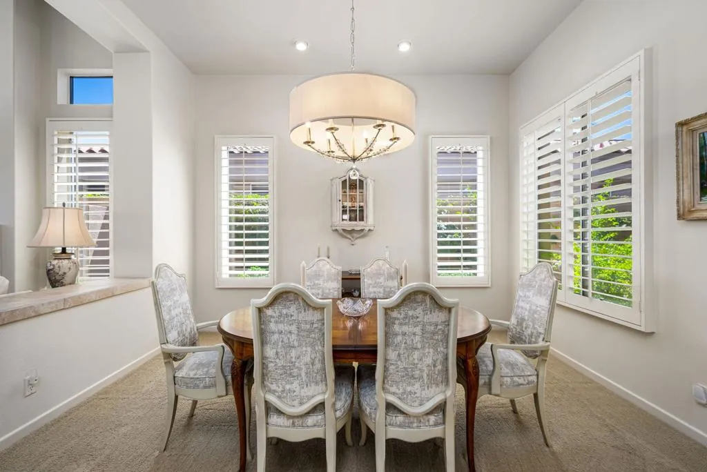 NEW PRICE! DOUBLE FAIRWAY VIEWS! Perched above Grove #14 and #15 at Indian Ridge Country Club, this meticulously maintained Palo Verde 3 model offers rare double fairway exposure, expansive mountain views, and exceptional privacy. The elevated East-facing patio is made for desert living, featuring electric awnings and a built-in BBQ – perfect for entertaining or relaxing while taking in the panoramic course & mountain scenery. Inside, the open-concept layout connects the living room, dining area, family room, and wet bar, all designed to capture those incredible views. The living room features a cozy fireplace, while sliding doors create seamless indoor/outdoor flow to the patio. The kitchen opens directly to the family room and offers granite countertops and countertop seating, ideal for casual meals and gatherings. The spacious primary suite includes a walk-in closet, an additional slider-door closet, and an ensuite bath with dual vanities, a separate shower, and a soaking tub. Both guest bedrooms are en suite, and the front guest suite is currently configured as a home office. Additional highlights include an attached 2-car + golf cart garage and a charming front courtyard with pavers lining the walkway and driveway. The community pool and spa are just a few doors away. Located close to the clubhouse, this home is just a quick golf cart ride to dining, the sports club, tennis, and pickleball. HOA monthly dues include security, cable & internet, all gardening, exterior paint, roof maintenance, exterior water, exterior pest control and trash. Indian Ridge CC features two Arnold Palmer Signature golf courses, tennis/ pickleball facilities, a fitness center, a full-service spa, two restaurants, 38 community pools/spas & active social calendar. Come and join the fun! CLUB membership available to Buyer with no wait! (Golf membership available by waitlist).