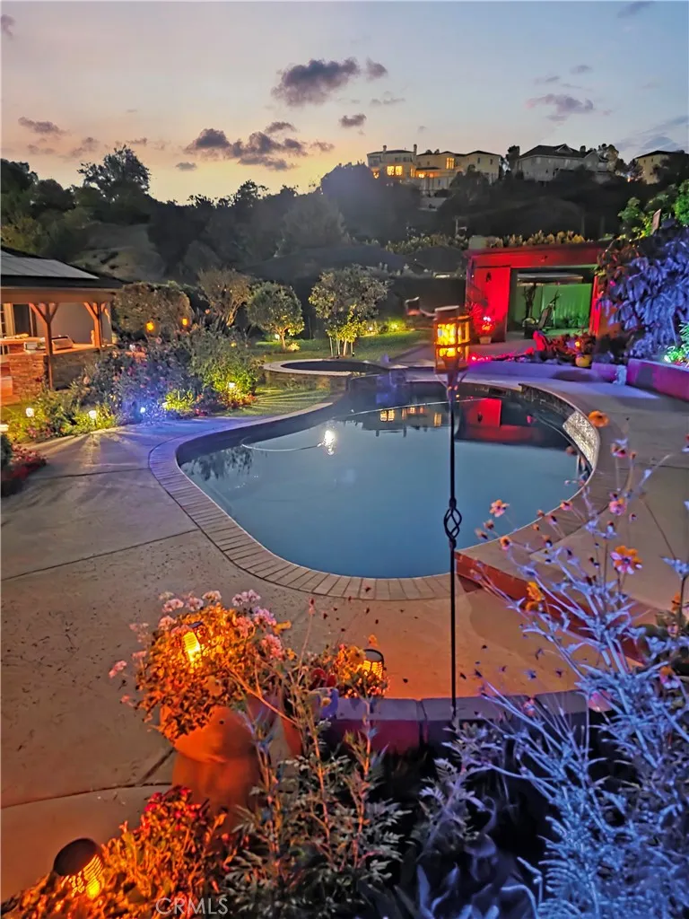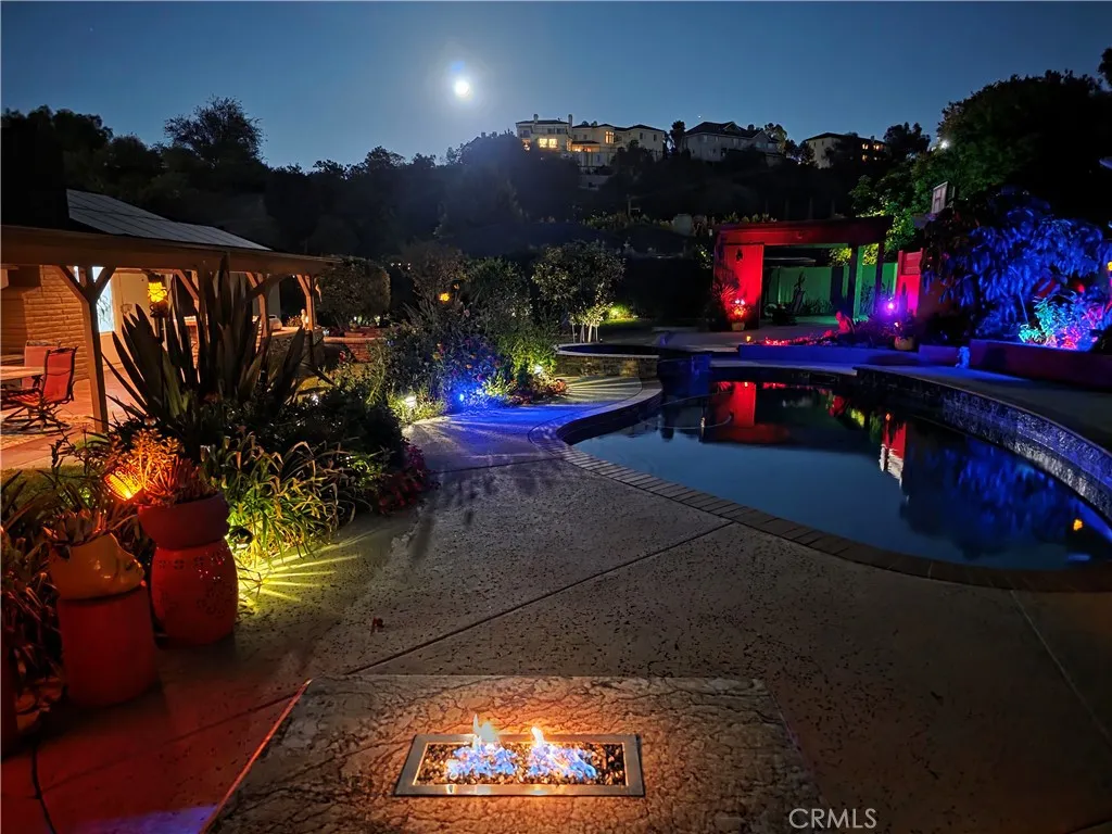 The home features paid-off solar panels, an open and inviting floor plan, upgraded flooring, recessed lighting, and a stunning remodeled kitchen and bathrooms. Step outside to your exceptionally private backyard oasis, perfect for entertaining — complete with a sparkling pool, a custom outdoor kitchen, a gas fire pit, a built-in grill, and a covered patio ideal for year-round gatherings.