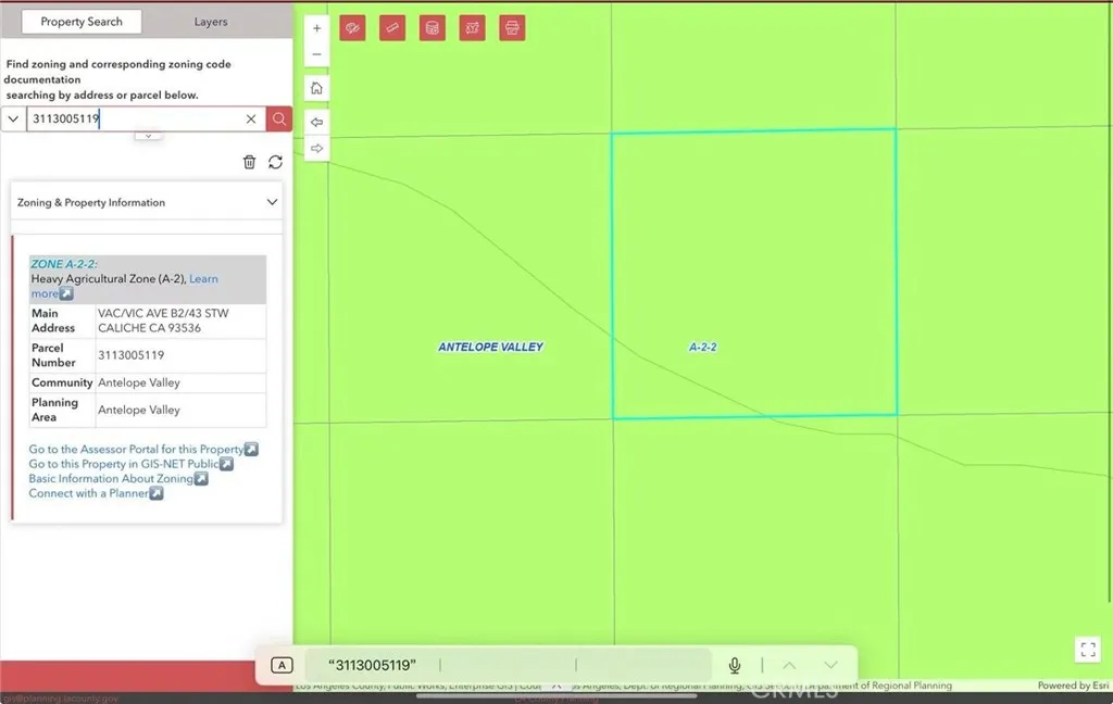Parcel Number 3113-005-119 is located in the Antelope Valley community of Los Angeles County.