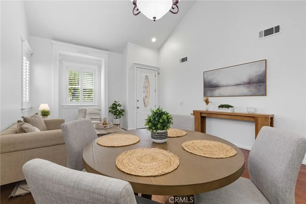 Nestled in quiet cul-de-sac in the highly sought-after Serrano Heights community of East Orange Hills this impeccably maintained 4 bedroom, 3 bathroom tri-level residence offers a perfect blend of comfort and functionality. A welcoming front porch greets you with serene views of the lush, landscaped front yard. Built in 2000, the home boasts a thoughtful floor plan with soaring cathedral ceilings, expansive windows, and a harmonious blend of travertine tile and wood laminate flooring. Inside, it’s adorned with shutters, designer lighting, and custom built-ins that offer both elegance and efficiency. The sun-filled formal living room provides a peaceful space to relax or entertain. The open-concept kitchen is a culinary delight, complete with stainless-steel appliances (fridge, built-in microwave, gas range, dishwasher, and trash compactor), custom cabinetry, and a travertine backsplash for added texture and warmth. A spacious breakfast bar flows into the cozy family room, where a custom media center and fireplace anchor the space. Just off the living area, you’ll find direct access to the backyard. Upstairs, a home office nook offers a quiet retreat for work or study. The indulgent primary suite is a true sanctuary, featuring custom closet built-ins which provides extra space for more wardrobe for all your style needs and a spa-inspired bathroom with a jacuzzi soaking tub, walk-in shower, dual vanities, private water closet, and ample cabinetry. All secondary bedrooms are generously sized with large closets and access to beautifully updated bathrooms featuring hand-selected tile and travertine finishes. Additional highlights include a whole house fan, attic with central air filter system, central A/C, second-floor laundry room, attached two-car garage with built-in cabinets and overhead storage, and paid-off solar panels for long-term savings. The meticulously landscaped backyard is a private paradise with mature plantings. Entertain guests under the covered patio with electric heaters, grill in the fully equipped outdoor kitchen, or unwind with a book. A large Tuff shed offers abundant storage, while a custom-built dog run with a small-pet door keeps pets secure. Every corner of this home has been lovingly curated for luxury and livability. With its prime location, thoughtful upgrades, and distinctive charm, this is more than just a home—it’s a lifestyle. Come experience the heart of Serrano Heights, where every detail is designed with purpose.