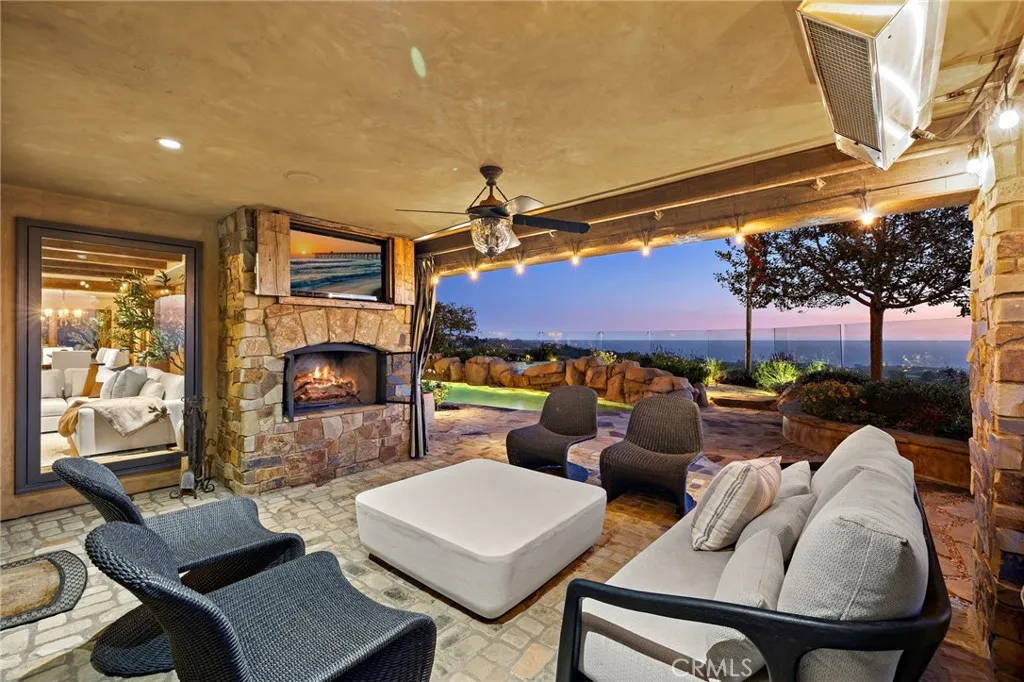 Available for the first time in nearly two decades, 25 San Mateo Way is one of the most iconic offerings in Corona del Mar’s Spyglass Hill. Set on an extraordinary oversized lot with rare positioning, this trophy estate captures sweeping, unobstructed views that span Newport Coast’s hillsides, Pelican Hill Golf Course, the Pacific Ocean, Catalina Island, Newport Harbor, Fashion Island, and sparkling city lights stretching to downtown LA. A private gated driveway leads to the residence, where approximately 7,109 sqft of interior living space is complemented by nearly 720 sqft of covered outdoor loggia space. Nearly every room in the home embraces the panoramic vistas and unparalleled privacy. The main level begins with a grand foyer and features a formal living room, wine room & tasting area, sunroom retreat, and an expansive great room that blends the family room, kitchen, and informal dining for 10+. Frameless glass bi-fold doors extend the interiors to the backyard sanctuary. A main-level ensuite bedroom offers comfort for guests. The upper level hosts 4 additional bedrooms, including an executive office with retreat and a large loft/media room. In total, the home offers 5 bedrooms plus office, bonus room, optional gym or private den, multiple living areas, and exceptional flexibility. Resort-like grounds create a setting designed for both entertainment and everyday enjoyment. Highlights include a pool with slide, spa, waterfalls, built-in BBQ island, crushed seashell bocce ball court, water features, and two covered loggia spaces: one designed for dining al fresco, the other for lounging with a fireplace and television. The meticulously maintained landscaping evokes the romance of Tuscany and offers multiple seating points to enjoy the endless views. With its gated entry, oversized driveway, 3-car garage, and unique setback that ensures unusual privacy, 25 San Mateo Way stands apart as a truly one-of-a-kind opportunity. Combining iconic views, timeless design, and a legacy lot, this estate represents the very best of coastal Orange County living – just a stone’s throw from premier shopping and dining at Fashion Island and the CdM Village, five-star luxury resorts, award-winning schools, John Wayne Airport, and convenient freeway access.