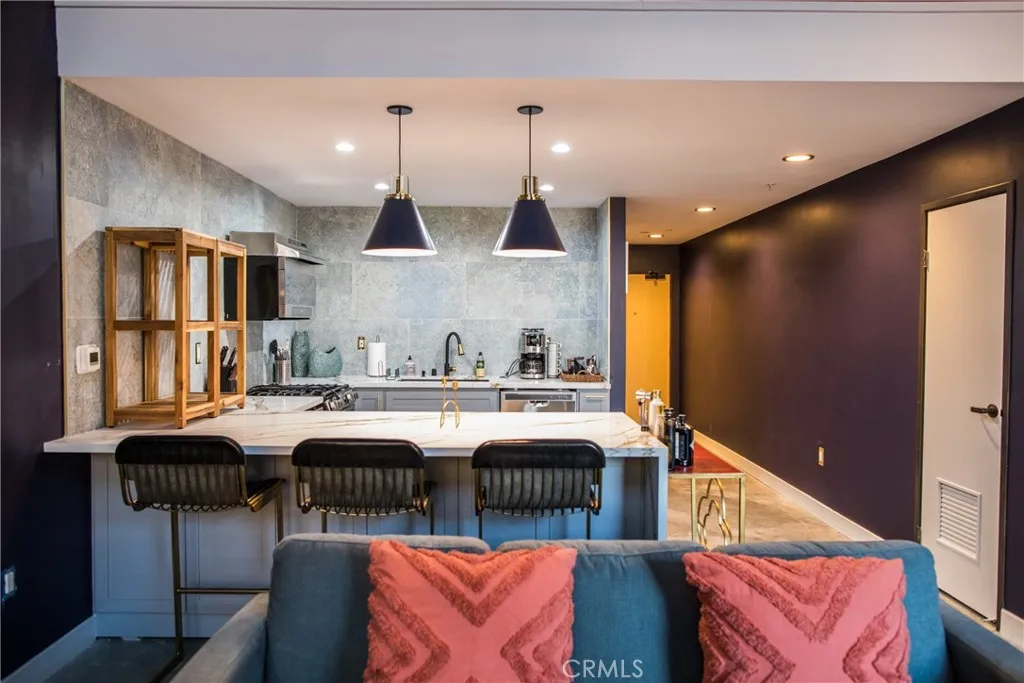 The kitchen is designed with practicality in mind, finished with imported Spanish tile that transports you to a Spanish villa while making your favorite meal. Offering ample cabinet space and modern finishes. The living area flows seamlessly to a private balcony perfect for morning coffee or relaxing evenings. Made with entertainment in mind, surrounded by Kilpsch in-wall speakers throughout and controlled by user friendly audio sound system that connects your T.V or phone. The spacious bedroom provides a peaceful retreat with generous closet space, while the bathroom is tastefully updated.