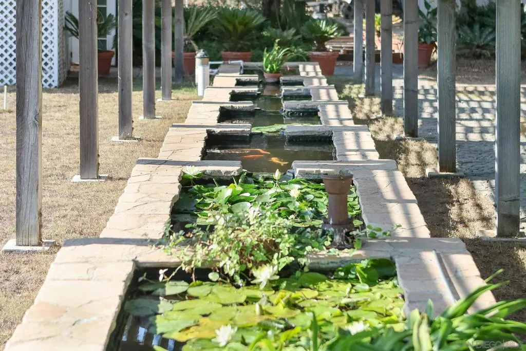 Step into a truly one-of-a-kind property where House, Guest House, Koi Ponds, Greenhouse, Solar, and so much more create a serene, tropical retreat. The main house, spanning 2,743 square feet, welcomes you with a stunning bridge over a large koi pond and a beautiful lava rock waterfall. Inside, skylights throughout provide year-round natural light. The home features an oversized, 600+ square-foot master suite with a cozy pot belly stove, perfect for a private escape. The entire property is powered by owned solar, making it an all-electric, eco-friendly home. Stroll down the path and discover a breathtaking landscape adorned with staghorn ferns and plumerias, giving it a lush, tropical feel. The grounds are an edible paradise with a variety of fruit trees, including peaches, pears, plums, papaya, and mango, to name a few. For the aspiring gardener, plumbing is already in place for future growth. The path leads you past seven waterfall ponds filled with koi and to a tranquil greenhouse with two small ponds and another lava rock waterfall. An oversized tool shed and chicken coop provide additional space for hobbies and self-sufficiency. The guest house, at 938 square feet, offers a private space for visitors. It includes two bedrooms, with the main bedroom upstairs opening to an outdoor deck perfect for watching the sunset. It also has its own pot belly stove for warm, cozy evenings. Attached is a spacious garage/shop with a carport, offering plenty of room for vehicles and projects. This property is a sanctuary where comfort and nature blend seamlessly.