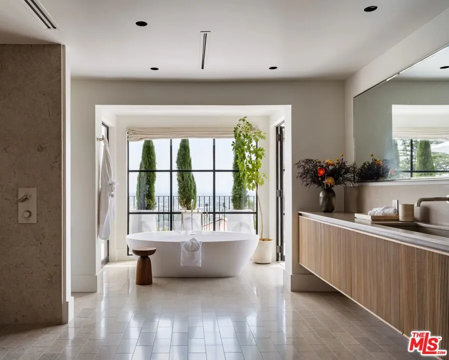 Nestled in the coveted Crest Streets of Beverly Hills, this contemporary estate blends timeless architectural pedigree with striking modern design. Originally built in 1926 as one of the model homes for the visionary Beverly Crest development by George Read, the residence stands as a piece of Los Angeles history, once said to be the home of legendary Hollywood architect John Elgin Woolf during the 1950s and ’60s. Fresh from an extensive renovation, the home now showcases warm modern interiors with clean lines, natural materials, and walls of steel windows and glass that frame sweeping, unobstructed views from downtown Los Angeles to the Pacific Ocean. Designed for both privacy and openness, the living spaces flow effortlessly to expansive outdoor terraces, lush gardens, and a serene pool oasis. Set on a verdant 19,154-square-foot lot, this gated property offers rare seclusion just minutes from the heart of Beverly Hills. A truly unique offering, where old Hollywood heritage meets sophisticated contemporary living. APN 4350-016-011 also included in sale.