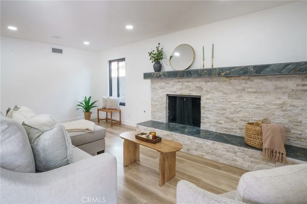 Welcome to this stunning 2-story masterpiece in the prestigious City of Cerritos. Fully renovated in 2025, this 4-bedroom, 2.5-bath + bonus room home blends modern elegance with everyday comfort. The heart of the home is a designer kitchen featuring top-of-the-line Z-Line stainless steel appliances, granite countertops, custom cabinetry, a walk-in pantry, and a stylish island perfect for gatherings. The open floor plan flows seamlessly into the spacious family room with fireplace, formal dining room, and living room — all enhanced with recessed lighting, new flooring throughout, and Bluetooth surround sound on the main level. Upstairs, the luxurious primary suite awaits, complete with two oversized closets and a spa-inspired bathroom offering dual sinks, a soaking tub, and an expansive tiled shower. Each secondary bedroom is generously sized, with elegant bathrooms illuminated by skylights for natural light. Step through double doors into your private backyard oasis — an updated covered patio with ceiling fan and string lighting, perfect for morning coffee or evening entertaining, overlooking lush landscaping. Additional highlights include: GA -Timberline shingle roof -Custom finishes throughout -Corner lot privacy -No HOA fees -Community tennis court & playground just steps away. This rare Cerritos gem offers the perfect blend of location, upgrades, and lifestyle. With so many custom touches, it truly must be seen to be appreciated. Don’t wait — this dream home won’t last long!