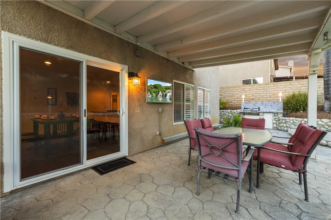 IMMACULATE and REMODELED cul-de-sac home near the top of Hillcrest shows like a model home with NO HOA or Mello-Roos! Pride of ownership is evident and the beautifully landscaped front yard provides great curb appeal with mature palm trees, a river rock wall, and an EXTRA WIDE DRIVEWAY THAT CAN ACCOMMODATE AN RV/CAMPER! Upon entry through the covered front porch, you’re greeted into the light & bright home that’s been FRESHLY PAINTED and is adorned with engineered bamboo wood flooring that is durable and water resistant and spans the entire first floor. Your stunning open-concept kitchen has been gorgeously remodeled with espresso soft-close cabinetry with pull out drawers, Ogee edge granite countertops, mosaic tile backsplash, pendant lighting, stainless steel appliances and sink, and a pantry. It opens up to the family room designed for entertaining with a surround sound system, ceiling fan, and a built-in entertainment center surrounding a cozy fireplace. Your first floor also includes a powder room and laundry room complete with plenty of cabinetry, a granite countertop, and a laundry chute from your primary suite. Head upstairs where you’ll find a spacious loft, 4 bedrooms, and 2 full bathrooms. Your primary suite features cathedral ceilings along with a double sink vanity, walk-in shower, soaking tub, spacious walk-in closet, and newly installed tile floors. Plantation shutters, crown molding, and recessed lights adorn the home adding to its beauty. Entertain and enjoy relaxing evenings in your tastefully landscaped backyard featuring outdoor lamp posts, a built-in BBQ, a gas fire pit, river rock planter walls, stamped concrete, raised garden beds with dedicated watering system, and covered patio to enjoy al-fresco dining or watch your favorite sports games on the 45″ outdoor TV. Your NEWER AC UNIT IS ONLY ~1 YEAR OLD and provides comfort and energy efficiency year-round. Your two car garage includes a work bench, shelving, and a level 2 EV charging station. Surrounded by award winning schools, parks, shopping centers, dining options, Castaic Lake, and being close to the 5 freeway and highway 126 making commuting quick and easy. Come by and become the lucky new owner of this TURN-KEY home where your story begins!