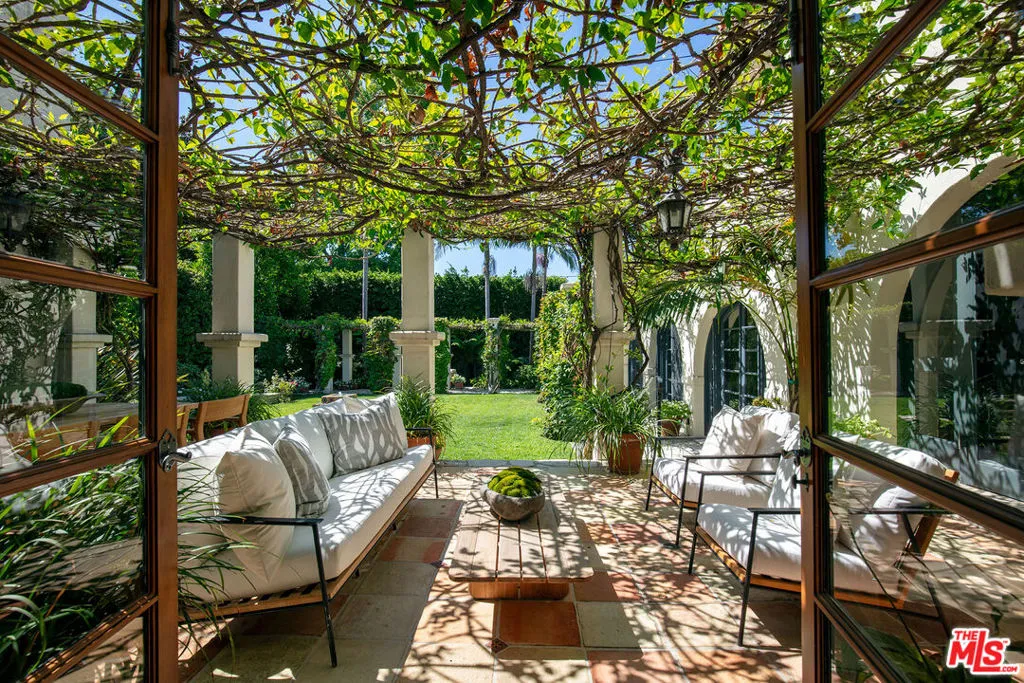 Walled and gated 1926 Spanish on extremely desirable Walden Drive in prime west end Beverly Hills flats. Recently refreshed and staged, and filled with romance and charm at every turn, this classic home has been tastefully remodeled while preserving the integrity of the original early California Spanish architecture. Much-admired street presence, private courtyard entry with original sculptural fountain, exceptional detailing and gorgeous gardens throughout. All the signature elements of the period can be found here including thick plaster walls, arched openings, French doors, beamed ceilings, hardwood & Saltillo tiled floors and original hardware, fixtures, ironwork, stained glass and paneled doors. Grand scale living room with exquisite wood beamed ceiling and ornate hearth, beautifully proportioned formal dining room, remodeled kitchen with adjacent breakfast room, inviting library/den and large family room – all of which open through arched French doors to courtyard, trellis-covered patios and lush yard. Fabulous primary suite with sitting area, generous bath and fitted closet. Two additional bedrooms upstairs, each with bath; and potential fourth bedroom downstairs. Other amenities include an oversized, direct access private garage and elevator. A very special offering in the best Beverly Hills flats locale.