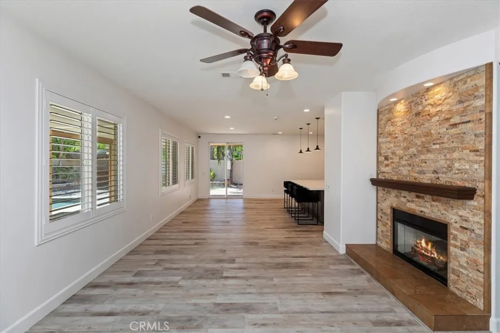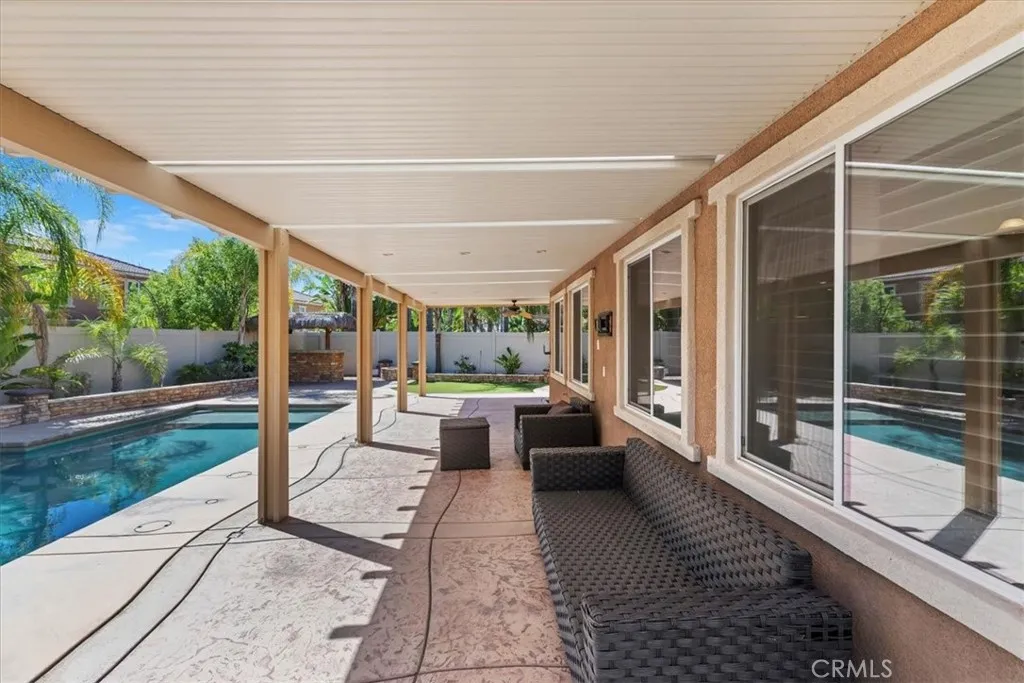 Beautiful, turnkey and upgraded pool home with paid off solar in Murrieta Oaks community offering over 3,200 sq. ft. of beautifully upgraded living space, offers 5 spacious bedrooms, including a convenient main-floor suite, and 3 full bathrooms. Inside, you’ll find soaring ceilings, plantation shutters, and elegant vinyl plank flooring throughout the open-concept layout. The gourmet kitchen boasts quartz countertops, double ovens, a large island with pendant lighting, and a walk-in pantry that flows seamlessly into the family room with a cozy fireplace and built-in entertainment center. Upstairs, a versatile loft leads to generously sized bedrooms, including the luxurious primary suite with dual vanities, a jetted tub, and a huge walk-in closet. Step outside to your private backyard oasis, complete with a sparkling LED-lit pool and spa, firepit, synthetic turf, and an Alumawood-covered patio with a built-in bar, recessed lighting, ceiling fan, perfect for entertaining year-round. Additional highlights include a 3-car garage with storage and workbench, a solar system, water softener, and no HOA!! Close to top-rated schools, shopping, dining, and freeway access, this home truly combines comfort, style, and convenience in one package. A must see!