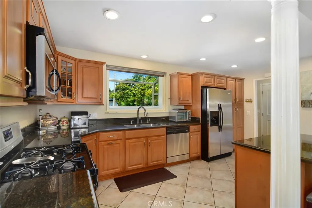 Charming 3-bedroom, 1.5-bath home in desirable West Hills! This light-filled residence features an open floor plan with hardwood floors, neutral carpeting, crown molding, and a chef’s kitchen with granite center island, stainless steel appliances, and ample cabinetry. French doors in the living room lead to a spacious backyard, ideal for entertaining, with a beautifully crafted covered patio. Garage has been converted into a bonus living area with storage and laundry. Located near award-winning schools—don’t miss this opportunity!