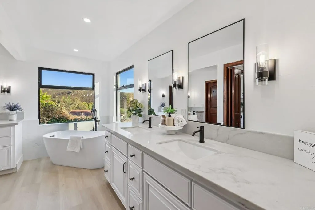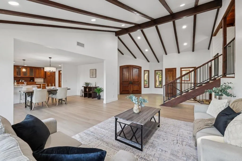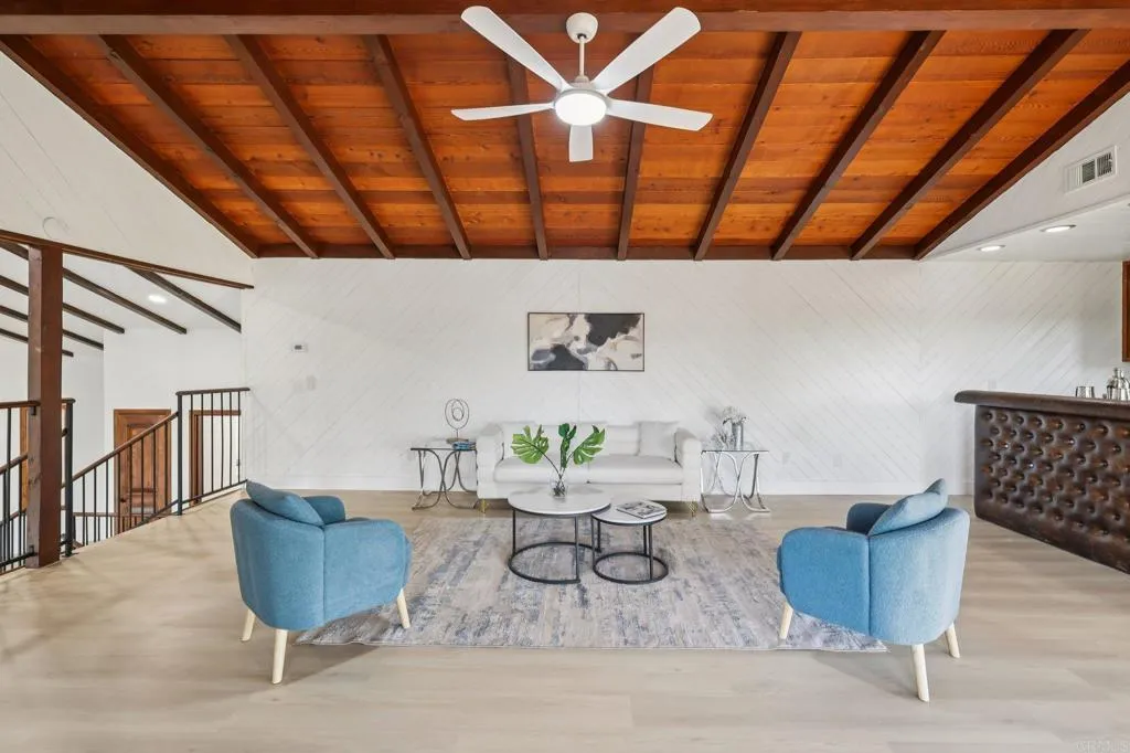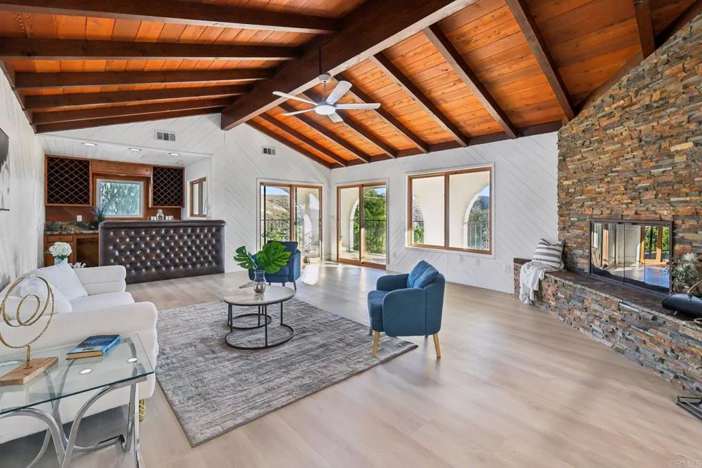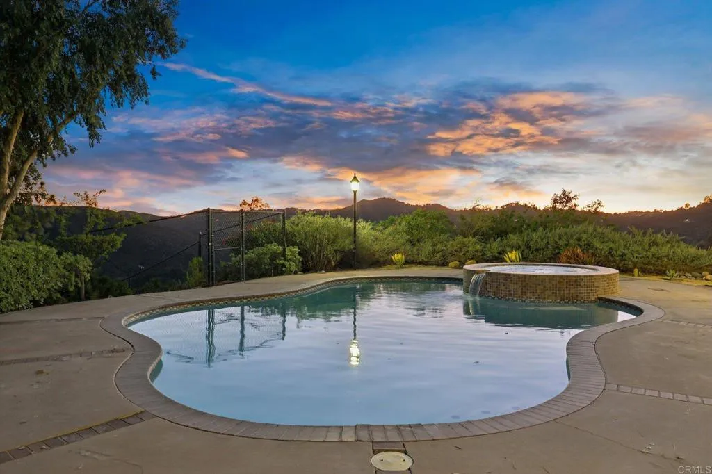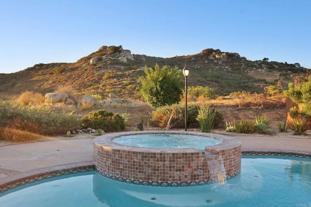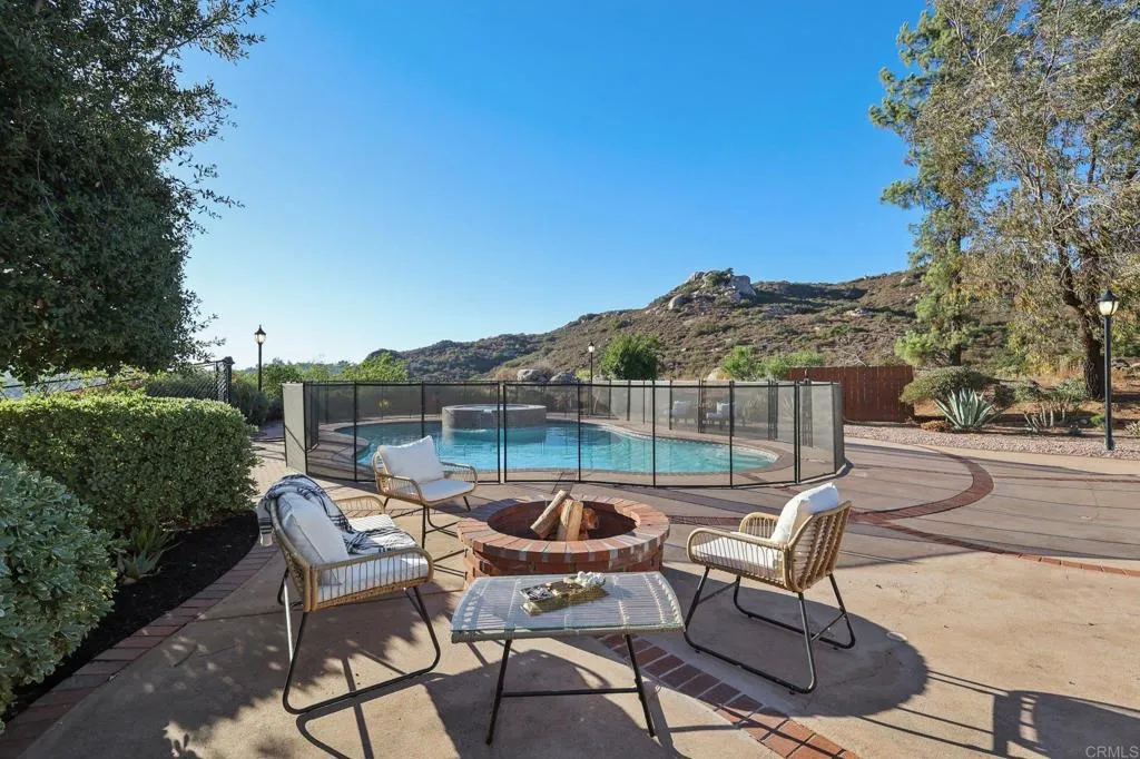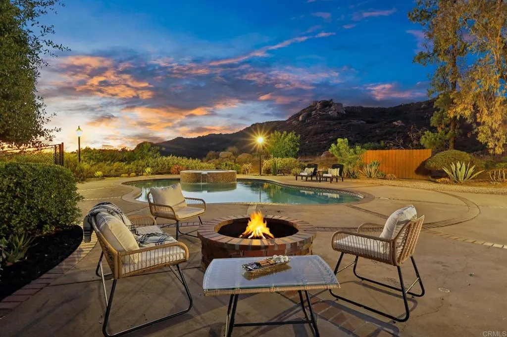 Stunning remodeled to like-Brand-New 4-bedroom Palo Verde Ranch estate on 2 acres with sweeping lake views, breathtaking sunsets, and a sparkling pool and spa! Tranquil courtyard and stately double doors open into a modern Spanish-style home with vaulted ceilings, exposed beams, and an inviting open-concept layout. The chef’s kitchen boasts a large gas island, high end cabinets, peninsula with seating, built-in oven and warming drawer, walk-in pantry, and brand new stainless appliances. Brand new luxury vinyl plank flooring, new paint, brand new matching quartz countertops throughout the home, and new dual zone HVAC! Entertainer’s dream backyard has panoramic views, a cozy fire pit for evenings under the stars, and a resort-style pool and spa with cascading waterfall – with brand new plaster, heater, and pump. The expansive primary suite features patio access, a private yard, tiled walk-in shower, dual sinks, makeup vanity, and walk-in closet, and spa-like bath where you can soak in the soaking tub and take in the lake views. Two additional bedrooms share an updated bath with pool access, while the fourth bedroom doubles as an office with fireplace, built-ins, and French doors to the courtyard. Upstairs, bonus loft offers a grand entertaining space with fireplace, bar, and lakeview balcony. A 3-car garage with epoxy floors and cabinetry provides abundant storage. This premium estate offers true resort-style living in Alpine’s coveted Palo Verde Ranch. HOA amenities include a clubhouse with meeting/dance room, kitchen, wet bar, sauna, fitness room, pool table, and lakeview patio. Residents enjoy two private lakes: the 50+ acre Big Lake for swimming, fishing, sailing, kayaking, paddleboarding, and electric boating, and the Little Lake with riding ring, tennis, basketball, pavilion with BBQs, playground, and sandy beach. Equestrian and outdoor enthusiasts will love the sand volleyball, badminton, horseshoes, and miles of private riding, hiking, and biking trails connecting to Cleveland National Forest and the Pacific Crest Trail. Seasonal events include fishing tournaments, summer picnics, Trunk-or-Treat, tree-lighting, and New Year’s Eve parties—all for just $152/mo HOA. Don’t miss this rare DREAM HOME!