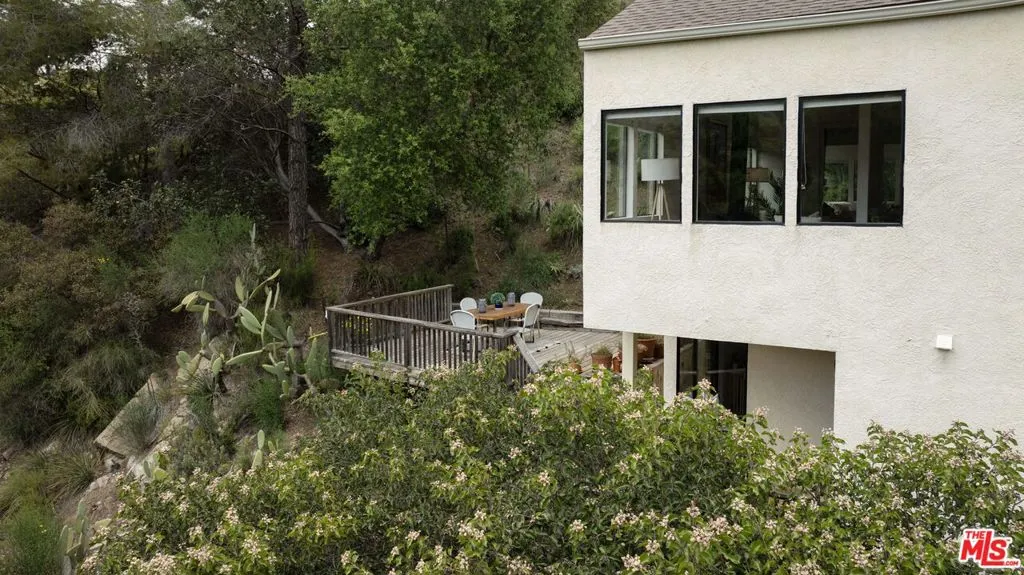 Price Reduction. A flower-filled garden and wide view decks grace this two-bedroom, two-bath canyon home on a large lot. A rose-covered path leads you to the shaded front porch. Open the front door to the cool Saltillo tile entry. First-floor bedrooms and bathrooms rest side by side, each with tall windows and glass doors to let in soft, natural light. Upstairs is the great room, where the living areas have a natural flow for entertaining. Rows of windows frame stunning views over green treetops to Red Rock Park. The high ceiling provides space for a versatile loft area. The generous kitchen features art tile countertops, glass-front cabinets, and lots of storage. Two cute bar-height counters are handy for grabbing a snack. Entertain guests in the dining area or sip tea on the balcony. Grill summer meals on the dining deck that shows off beautiful views of Old Canyon. A huge detached studio sits across the driveway waiting for you to set up your art studio, office, or workout space. A newer roof, solar panels, two Tesla power walls in the carport, and plentiful parking complete the property. Come up to Topanga!