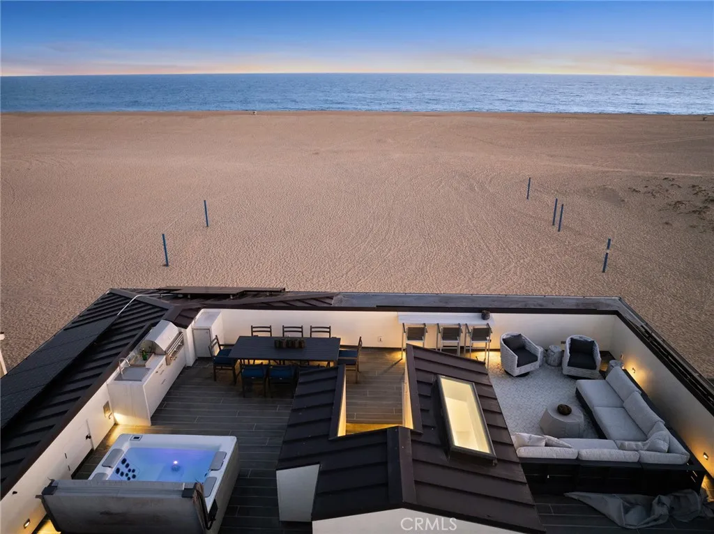 Commanding a rare double-lot along the pristine sands of Newport Beach, this newly completed architectural masterpiece stands as a statement of modern coastal luxury. With over 60 feet of coveted ocean frontage, the residence encompasses more than 4,400 square feet of meticulously composed interiors, complemented by expansive terraces that capture uninterrupted views of the Pacific. Every detail reflects a refined sensibility — soaring ceilings, limestone floors, and walls of glass that dissolve the boundary between inside and out. The primary suite is a sanctuary unto itself, offering a spa-inspired bath with infrared sauna, two state of the art walk in closets, and dual vanities. Designed for both relaxation and entertaining, the home features a chef’s kitchen appointed with Miele, Wolf, and Sub-Zero appliances, a bonus lounge with wet bar, a fitness studio overlooking the ocean, and a rooftop retreat with a full outdoor kitchen and panoramic vistas of the ocean and bay. A Boutique Luxury elevator, advanced smart home systems, solar integration with Tesla backup, and a climate-controlled three-car garage further distinguishes this exceptional estate. Poised on one of the most exclusive stretches of the California coastline, 706 W Oceanfront offers an unparalleled opportunity to embrace the quintessential Newport Beach lifestyle at the water’s edge.